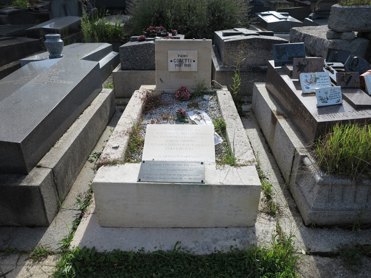 Accolto in una tomba austera messa a disposizione da Nitti al cimitero del Père Lachaise, Gobetti è rimasto lì per volontà dei familiari, perché il suo mancato ritorno in patria fosse simbolo della sua opposizione. Ma la sua assenza dall’Italia fu un monito severo anche per gli amici rimasti che si impegnarono a proseguirne l’opera facendo vivere finché fu possibile Il Baretti e le edizioni letterarie, prime fra le quali uscirono, nel 1926, quelle di Piero, Risorgimento senza eroi e Paradosso dello spirito russo, seguite nel 1927 dai due volumi dell’Opera critica. Impossibile far rivivere le opere politiche o La Rivoluzione Liberale, sia pure sotto le mentite spoglie di giornale letterario; il volume La rivoluzione liberale. Saggio sulla lotta politica in Italia pubblicato da Gobetti nel 1924, che conteneva la summa del suo messaggio ebbe circolazione contrastata e clandestina.