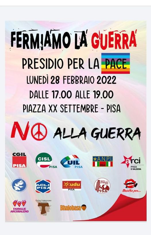 Ribadiscono i partigiani lanciando una grande manifestazione nazionale: “La Segreteria Nazionale dell’Anpi fa appello alle forze sociali e politiche e a tutti i cittadini per una immediata e grande mobilitazione unitaria per il ritiro delle forze armate russe dall’Ucraina e per la pace, a cominciare dalla manifestazione nazionale che si svolgerà a Roma sabato 26 febbraio”. L’appuntamento è alle ore 10,30 a piazza Santi Apostoli.