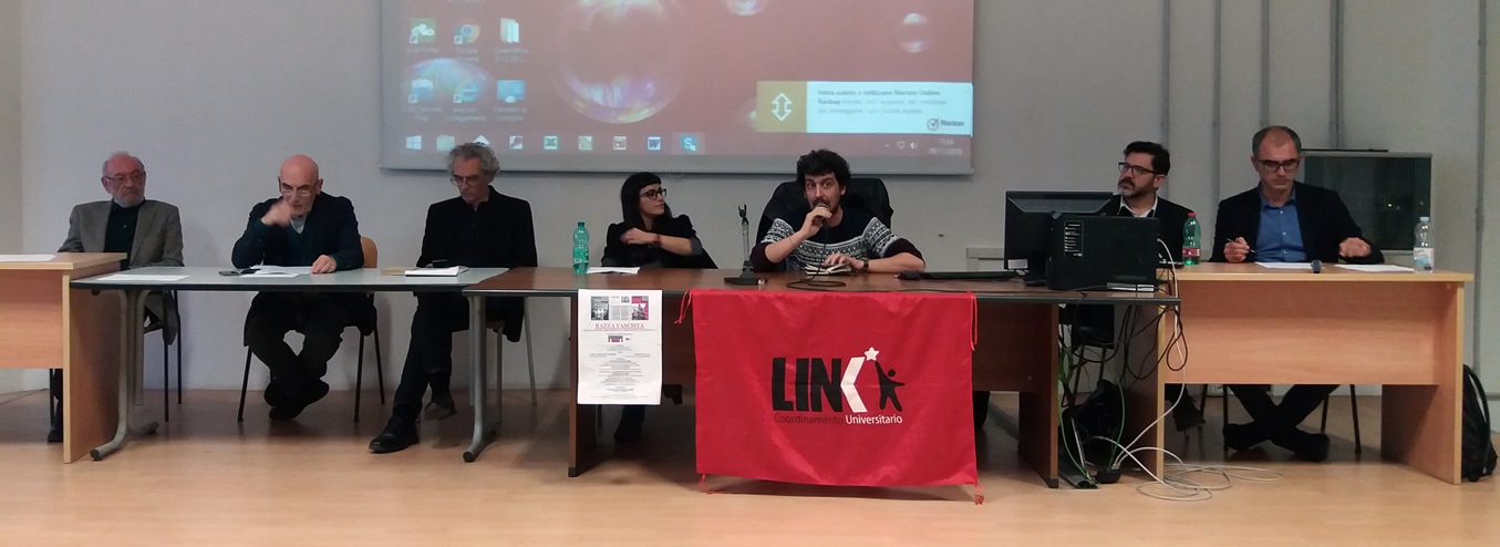 Dopo il saluto e la presentazione di Piercarlo Melchiorre, coordinatore della Link universitaria di Bari, ha preso la parola Nicola Colaianni, già magistrato e docente universitario, che ha sottolineato il rilievo e gli obiettivi del convegno: egli ha fra l’altro ricordato i docenti espulsi dall’Ateneo barese nel 1938 in seguito alle leggi razziali.
