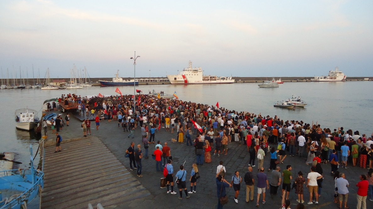 L’area portuale, con l’eccezione delle ore notturne, è stata costantemente presidiata. Entusiasmante la partecipazione, forte la passione civile e democratica, grande lo sdegno contro le forze politiche governative che hanno tenuto rinchiusi nella nave i reietti, già drammaticamente sconquassati dagli eventi, in Libia e in mare.