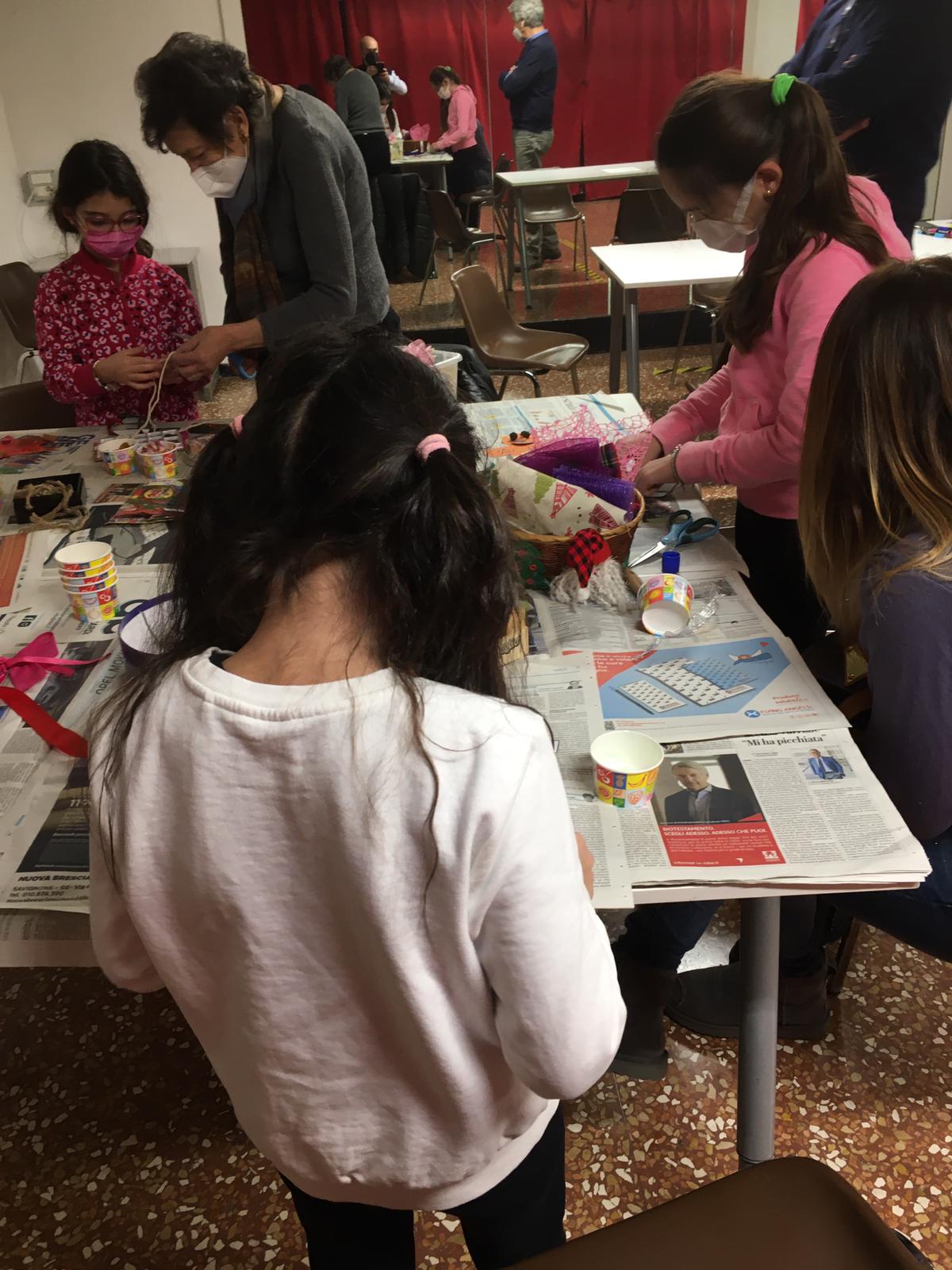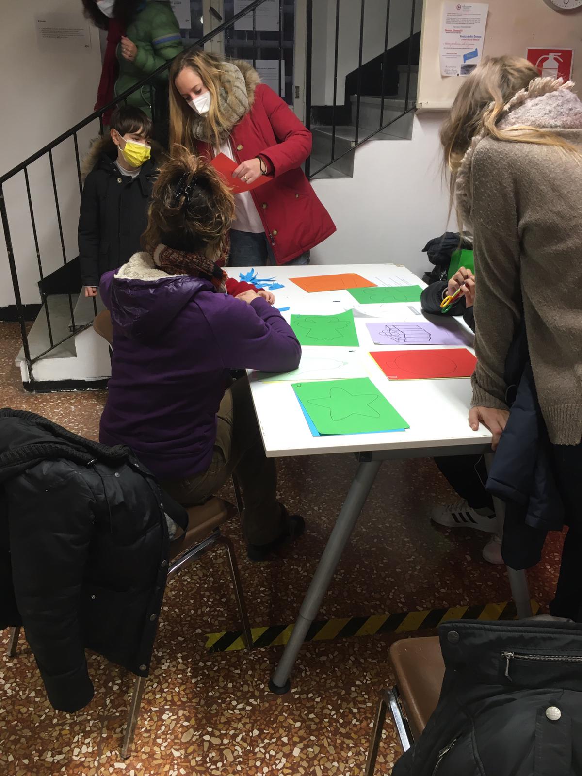 Si è trattato di un laboratorio per bambini e famiglie organizzato nella sede Anpi di San Fruttuoso lo scorso 15 dicembre con lo scopo di far realizzare ai bambini addobbi natalizi su cartoncino che venivano impreziositi da materiali naturali o di riciclo (semi, nastri colorati, foglie, petali, cordini, bottoni…). Al centro della decorazione è stato inserito un messaggio che rievoca sia il Natale, sia i capisaldi della nostra Costituzione – pace, solidarietà, fratellanza e democrazia in primis – spiegando in modo semplice ai bambini il significato di ogni termine utilizzato. Ogni bambino ha seguito un percorso attraverso tre tavoli: al primo ha scelto il soggetto tra diversi disegni natalizi di addobbi precedentemente stampati su carta colorata di riciclo e il colore e ha iniziato a ritagliare la sagoma del soggetto; nella seconda postazione è stato inserito il messaggio valoriale con l’aiuto di un adulto che ha spiegato in maniera semplice, rapida e intuitiva il significato di ogni valore; infine, l’addobbo è stato impreziosito da un materiale scelto liberamente da ogni bambino tra quelli di origine naturale, come foglie, rami, petali, legnetti, gusci e semi, o di riciclo, come nastri, cordini, bottoni, stoffe e dettagli di lana. Le decorazioni, una volta completate, sono state posizionate su un grande albero affisso al centro della parete, precedentemente realizzato con cartoncino di recupero e tempera verde atossica.