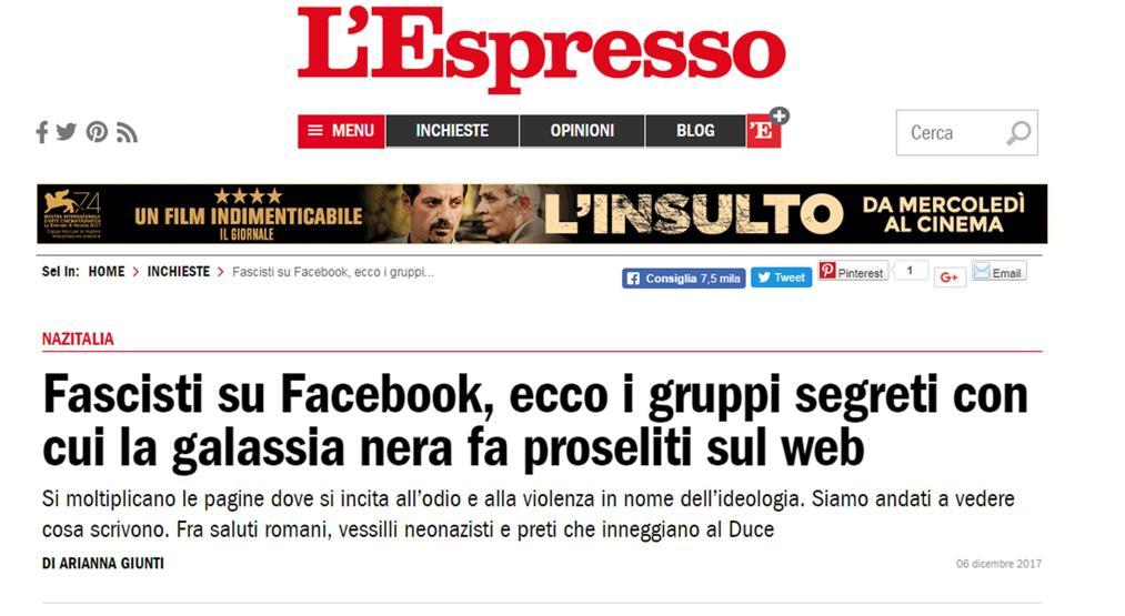 Certo, sembra paradossale pensare a tali misure quando la conclusione è che a un gruppo dichiaratamente fascista come CasaPound, molto attivo sul web e su Facebook, è stato consentito di presentarsi ufficialmente (e per fortuna con risultati quasi insignificanti) alle recenti elezioni politiche del 4 marzo. È quindi nostro dovere agire per evitare ogni ulteriore paradosso e per rendere ogni “conclusione” conforme a Costituzione o, in una parola, antifascista.