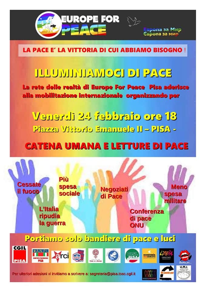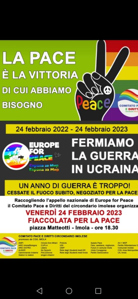 “La pace è la vittoria di cui abbiamo bisogno”, “un anno di guerra è troppo” i motti scelti dalle mobilitazioni. Per tutte le iniziative https://www.anpi.it/eventi/ e https://sbilanciamoci.info/europe-for-peace/
