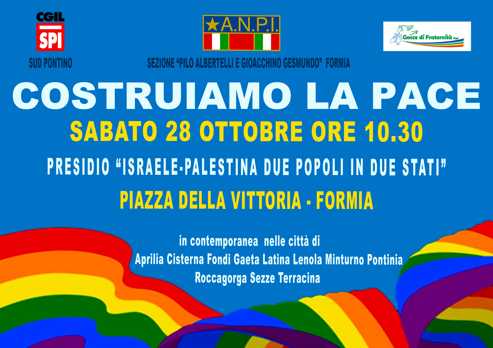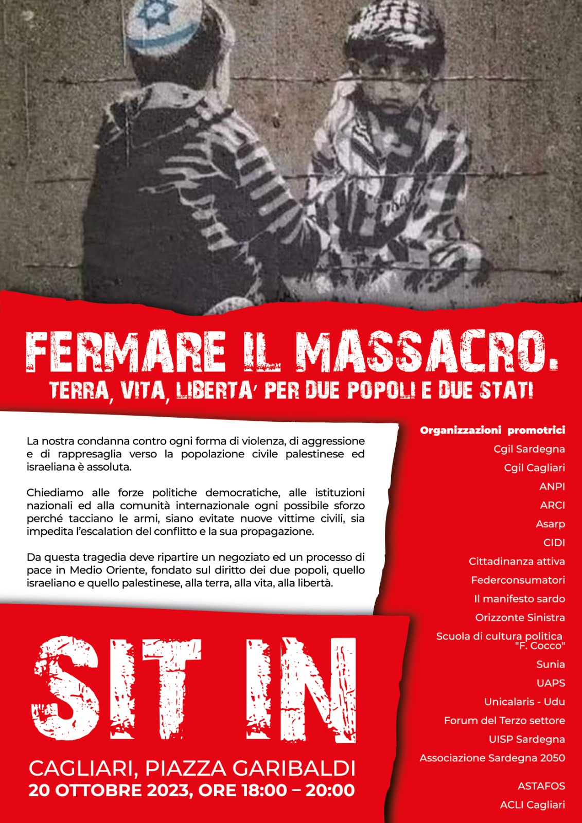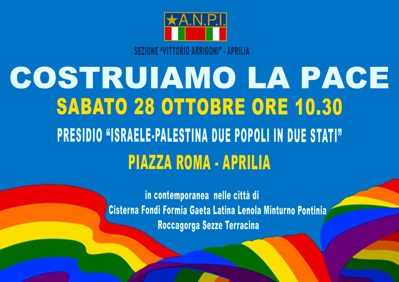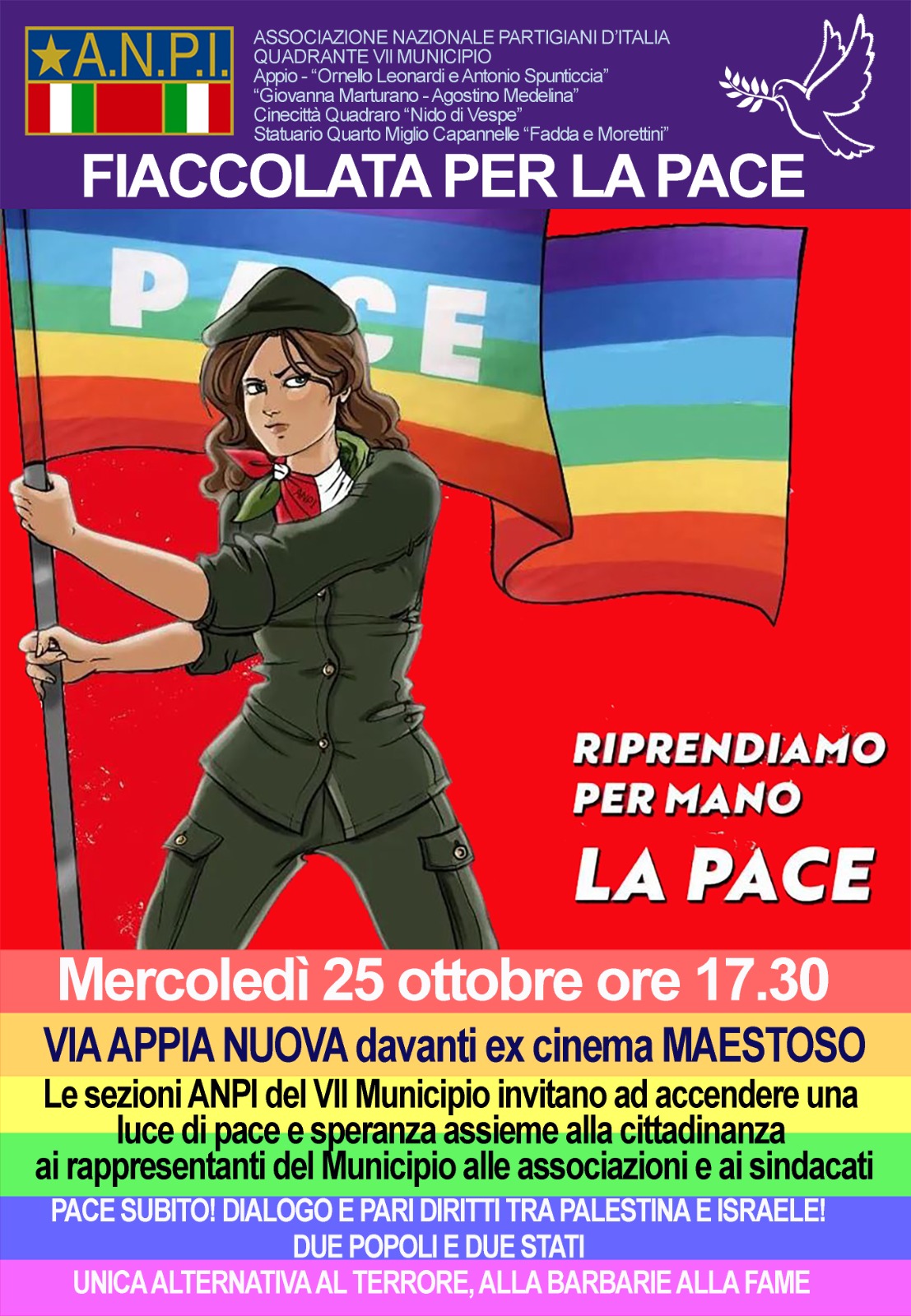Oggi con il fiato sospeso perché stamattina, dopo altri bombardamenti nella notte, è scaduto l’ultimatum israeliano, le Anpi tornano a pretendere azioni concrete di pace a Firenze, Bari, Perugia perché non è tollerabile l’assedio di Gaza e il terrorismo non può conoscere giustificazioni. Presidi e cortei si terranno pure domani e proseguiranno la prossima settimana, annunciano le prime locandine che stanno arrivando al nazionale Anpi da Modena, Novara, Rimini, Catanzaro.