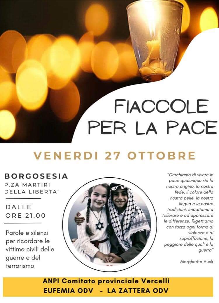 Orrore chiama altro orrore. Così è stato è così sarà. Dunque la strada resta una sola: “Riprendere per mano la pace”. Ieri l’Anpi, dopo aver promosso insieme a oltre 100 associazioni con capofila la Cgil, la grandiosa iniziativa nazionale dello scorso 7 ottobre scorso e da mesi decine e decine di locali, l’ha invocata nel capoluogo emilianoromagnolo con una partecipatissima fiaccolata e un lungo striscione “Bologna cammina per la pace” insieme a cittadini, rappresentanti delle istituzioni locali, esponenti del mondo ecclesiale. A Milano un gigantesco striscione della pace ha campeggiato alla mobilitazione organizzata insieme alla Camera del Lavoro, Emergency, Acli, Casa della Carità. A Brescia una formidabile rete ha detto No al terrorismo e alla guerra, ai crimini contro l’umanità, chiedendo pacifica convivenza e sicurezza dei popoli.