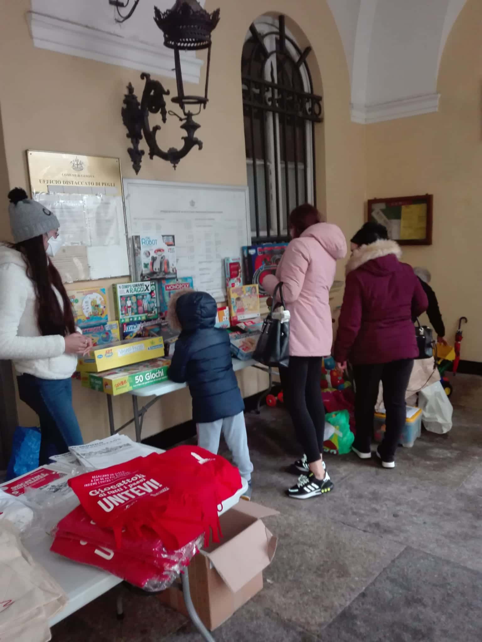 I banchi carichi di giochi sono stati allestiti anche dalle sezioni Anpi di Sampierdarena e Pegli; a Chiavari, nel levante ligure, la presidente della sezione “Paolo Castagnino Saetta”, Maria Grazia Daniele, sollecitando la raccolta insieme ai ragazzi delle 6000 Sardine del Tigullio, ha avviato un dialogo importante di collaborazione con l’amministrazione comunale, anche qui di centrodestra: 600 i doni raccolti e regalati, otre a 50 scatoloni e 40 grandi sacchi di alimenti per i frati Cappuccini di viale Tappani: «La gente ha voglia di sentirsi solidale, soprattutto nei momenti di emergenza e questo ci scalda l’anima» spiega.