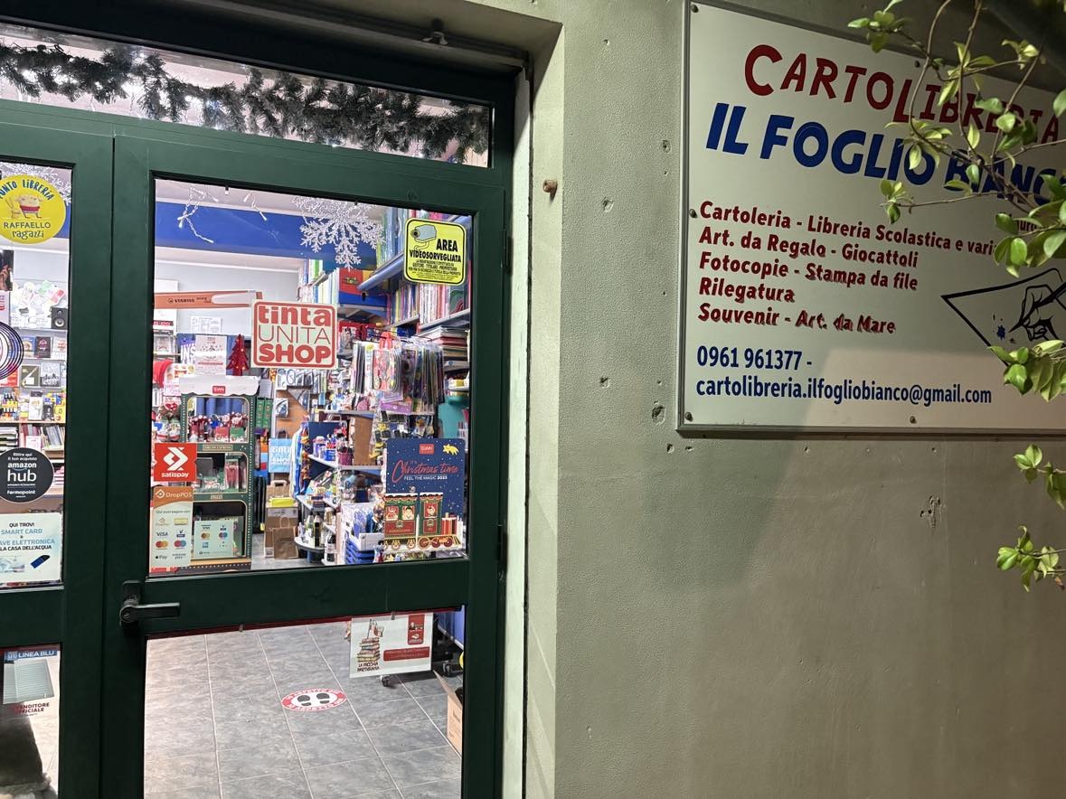 Voglio infine ringraziare per la meravigliosa ospitalità e la collaborazione la cartolibreria “Il Foglio Bianco” di Adelina e Carlo. In una Italia dove si legge sempre di meno ci sono piccoli punti che resistono e vanno avanti più vivi e attivi che mai. Grazie.