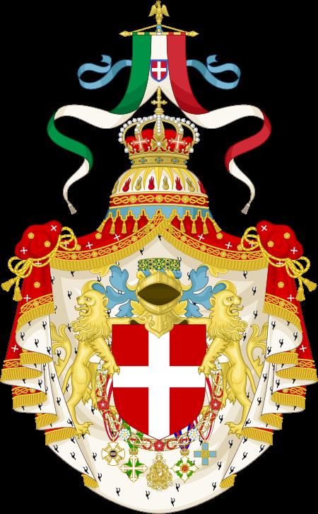 «Campo di cielo alla corona di otto torri, al naturale, accompagnata in capo dalla stella d’Italia, raggiante, d’oro, e in punta dal mare ondoso. Il tutto incorniciato da due rami d’olivo con le scritte in basso (sinistra) Libertà (destra) Unità».