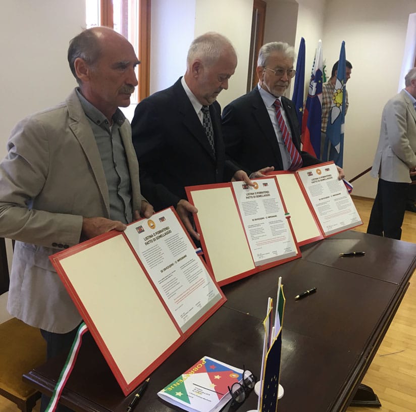 È proprio in quest’ottica e seguendo questo filo conduttore che il gemellaggio tra le organizzazioni partigiane di Kobarid, della Benecija e di Cividale assume una grande importanza. Il patto di gemellaggio sottoscritto il 29 settembre 2018 tra ZBB-NOB e ANPI così recita: “Ci impegniamo ad approfondire le nostre relazioni collaborando in tutti gli ambiti e particolarmente con la finalità di: assicurare rapporti di buona convivenza reciproca; valorizzare, tutelare e favorire la memoria e la ricerca storica in relazione alla comune lotta al nazi-fascismo; favorire rapporti di interscambio culturale e sociale e riaffermare i principi di pace richiamati anche dagli statuti delle nostre Associazioni. Ciò indipendentemente dalle differenze linguistiche e culturali esistenti nei nostri territori ed anzi utilizzandole come forza positiva per un’ulteriore crescita delle nostre Comunità, nel rispetto delle singole autonomie”. Alle future iniziative, alcune già in cantiere, il compito di concretizzare questo patto.