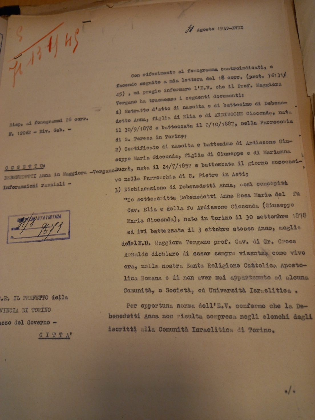 Per dimostrare di non essere ebrei i certificati di battesimo non bastavano mai perché occorrevano gli atti di battesimo anche dei nonni e bisnonni oltre a non essere iscritti nei registri della Comunità israelitica.