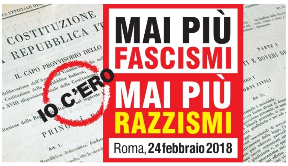 Con la manifestazione nazionale e unitaria del 24 febbraio, dopo le iniziative dei mesi scorsi a cominciare dal 28 ottobre 2017 e dopo le manifestazioni a Macerata e in molte altre città d’Italia, si deve rafforzare un paziente lavoro di valorizzazione della dignità della persona, dell’apprendimento culturale fin dall’età scolare, del recupero e della trasmissione della memoria, per riaffermare il valore della Costituzione e della sua piena attuazione. Fascismi e razzismi hanno provocato nel 900 le più sconvolgenti tragedie della nostra storia. Mai più!