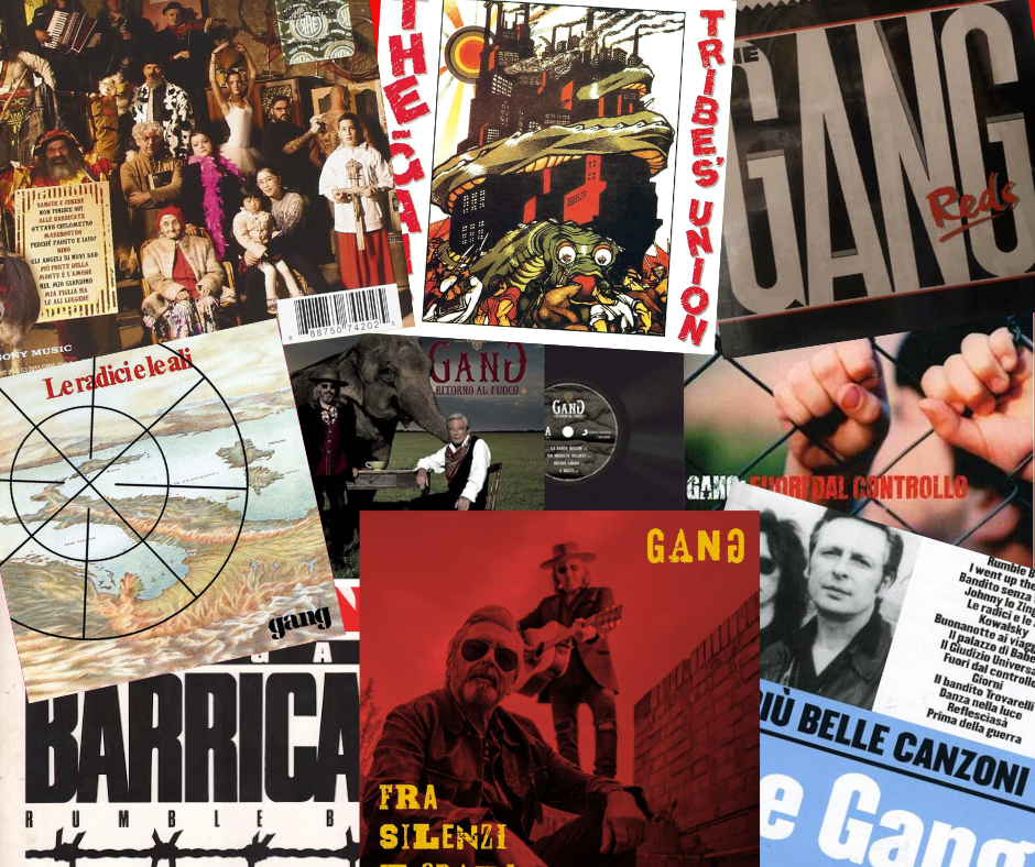 Nati sul finire degli anni Settanta sulla scena marchigiana, a partire dal decennio successivo cominciano la loro avvincente storia discografica, passando dall’autoproduzione alle grandi etichette per poi tornare alla libertà espressiva, nello stile e nella scelta dei contenuti. Sono numerosi i temi che le canzoni dei Gang hanno affrontato nei tanti anni di carriera: il contrasto alla mafia, la difesa dei più fragili, le lotte dei popoli dell’America Latina, la guerra in Palestina, il mondo del lavoro sommerso e sfruttato, l’invadenza e l’inaffidabilità dei mass media, l’emigrazione del passato e quella di oggi, l’antimilitarismo, le radici e l’identità, la Resistenza, anche l’amore. Un canzoniere epico, un grande atlante popolare nel quale andare a ricercare fatti della storia d’Italia e del mondo, protagonisti di azioni eroiche o di semplici gesti di umanità. Un vangelo in cui sono raccolti i capisaldi del vivere civile, le basi su cui poter poggiare un futuro solido. E anche le insidie e le minacce, tutto ciò che adombra e stritola quei principi e che getta il mondo nell’indifferenza, nella violenza, nell’ignoranza e nella precarietà. Ieri come oggi.
