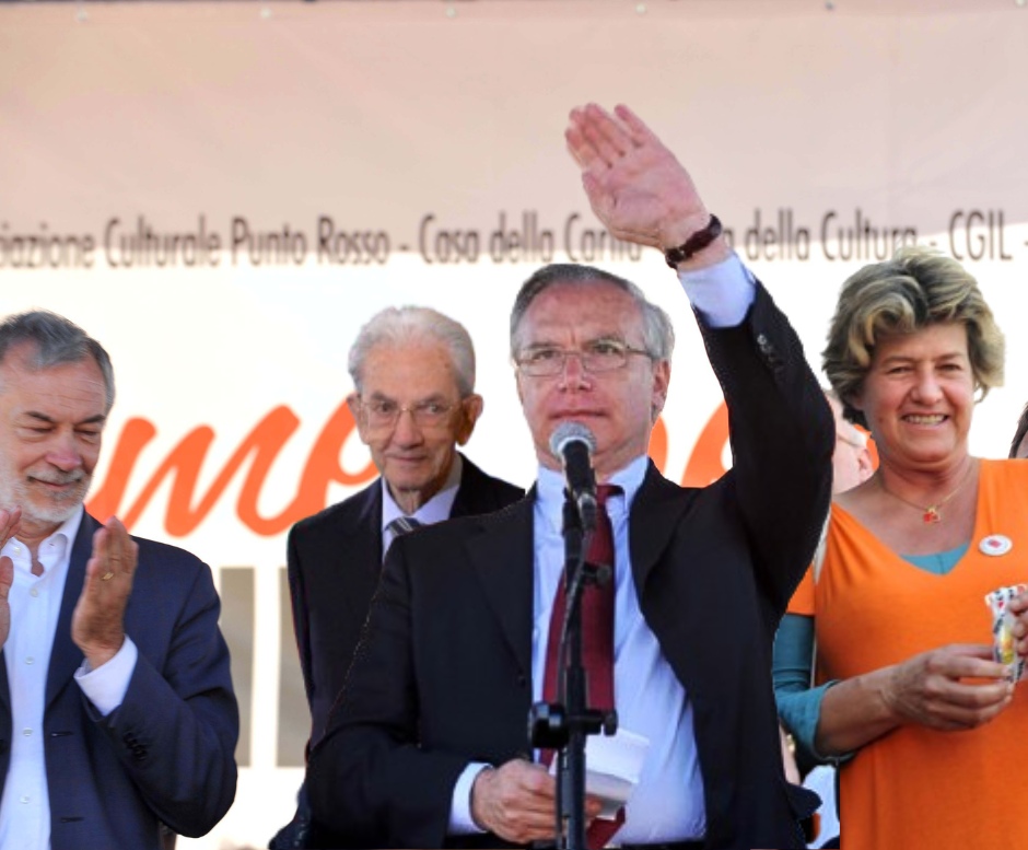 L’immagine di Imagoeconomica è una composizione di due scatti di Saverio De Giglio, presi in piazza Castello a Milano il 2 giugno 2010. Al centro, Guglielmo Epifani, dietro Carlo Smuraglia, accanto a sinistra Carlo Ghezzi e a destra Susanna Camusso