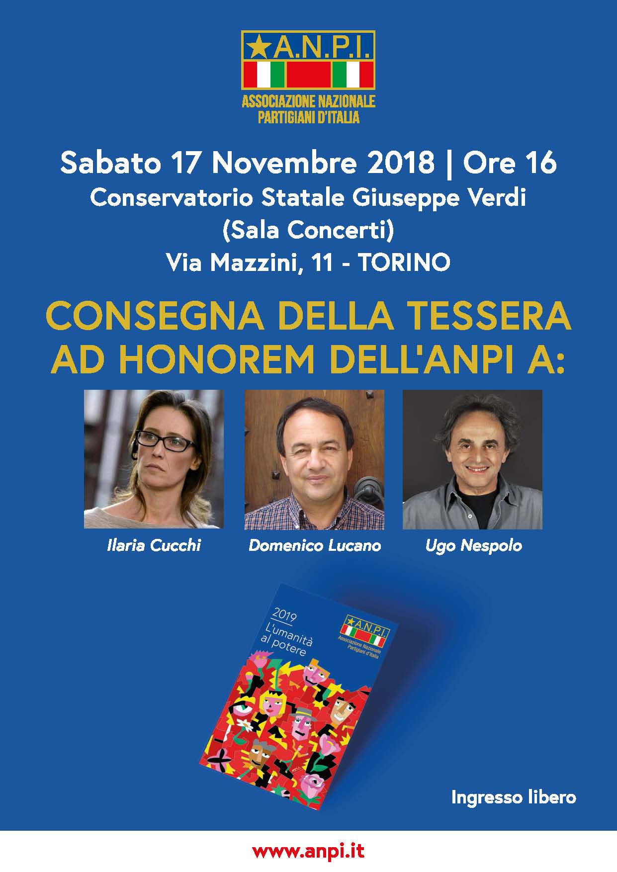 A Roma e provincia l’Anpi, il 17 e 18 novembre, sarà presente in 20 piazze, a Milano tutte le Sezioni saranno aperte, a Firenze verrà proiettato il film di Wim Wenders “Il Volo” dedicato alla preziosa esperienza di accoglienza realizzata a Riace, a Torino verrà consegnata la tessera ad honorem a tre attivisti dei diritti e della cultura del dialogo: Ilaria Cucchi, Domenico Lucano e Ugo Nespolo (quest’ultimo ha realizzato l’immagine della nuova tessera).