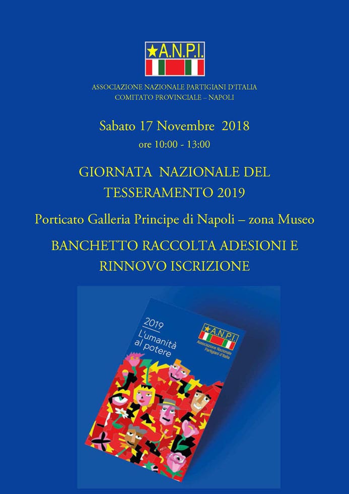 “L’umanità al potere non è uno slogan, ma l’unica vita possibile” così si esprimeva Carla Nespolo nel suo appello per la partecipazione alla Marcia Perugia-Assisi svoltasi il 7 ottobre scorso. E con questa appassionata convinzione l’Anpi il 17 e 18 novembre sarà in oltre 100 piazze d’Italia per avviare la sua campagna di tesseramento 2019.