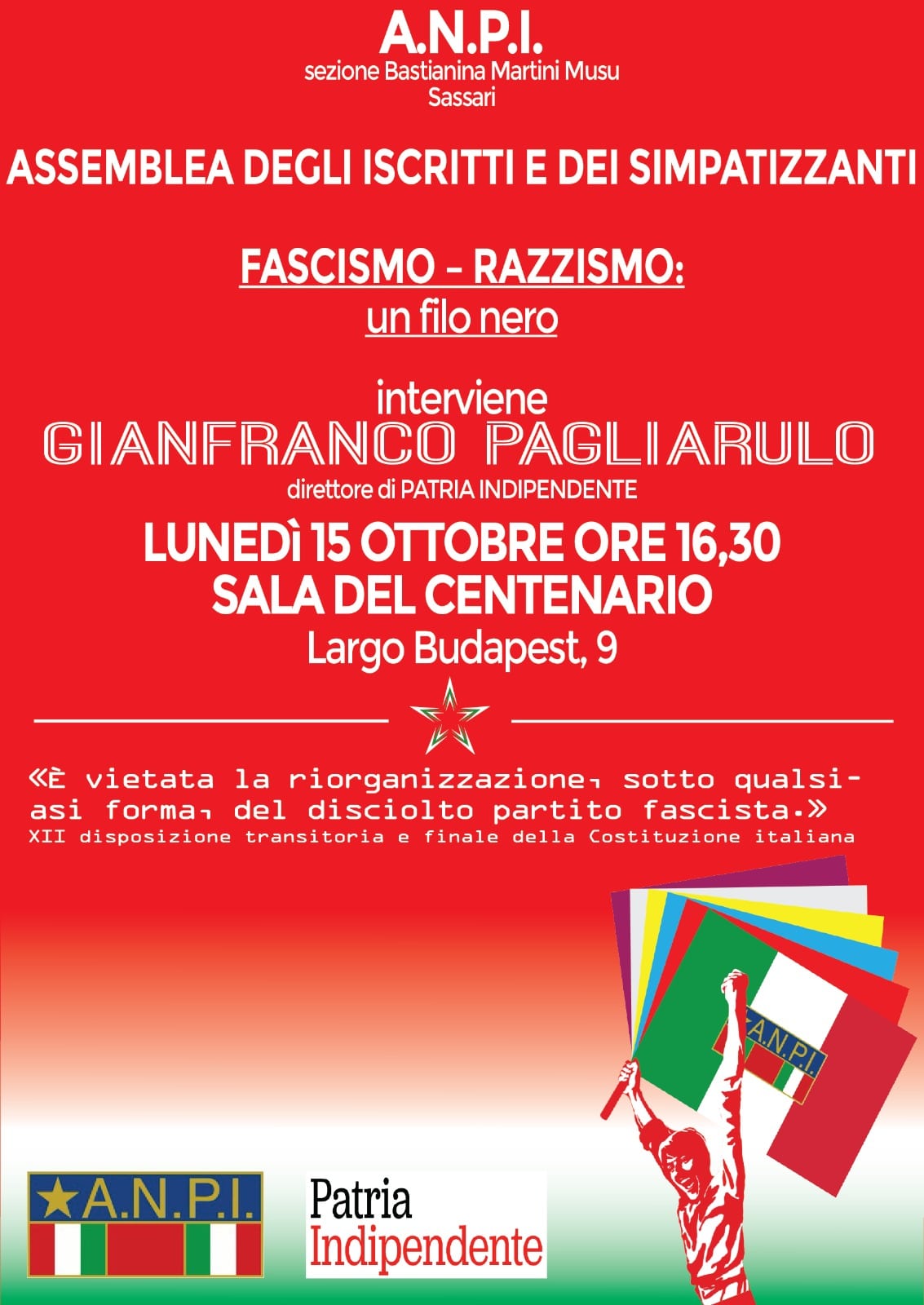 È per lunedì 15 ottobre alle 16.30 l’appuntamento a Sassari presso la sala del centenario in largo Budapest 9. Il tema: “Fascismo-Razzismo: un filo nero”. Interverrà Gianfranco Pagliarulo, direttore di questo periodico. L’iniziativa è promossa dalla sezione dell’Anpi Bastianina Martini Musu di Sassari. Al suo centro il tema cruciale – il rapporto fra fascismo e razzismo – che ha sempre caratterizzato tutti i fascismi: quelli del 900 e quelli attuali. Oggi il volto del razzismo è parzialmente mutato rispetto al passato, quando la presunta differenza in “razze” umane si presentava come ragione di una gerarchia fra popoli e di conseguenza come giustificazione del dominio dell’uno sull’altro, a cominciare dalle operazioni coloniali. Si trattava prevalentemente (anche se non esclusivamente) di razzismo “biologico”, come se geneticamente i neri – per fare un esempio – fossero inferiori ai bianchi. Oggi, pur mantenendosi alcune forze di questo tipo di razzismo “naturale”, se ne aggiungono altre di tipo “culturale”: il neorazzismo – o razzismo “differenzialista” – che si manifesta, per esempio, nella presunta necessità di chiudere i confini, per non contaminare l’incompatibilità degli stili di vita e delle tradizioni di popoli diversi e si accompagna sovente a teorie “complottiste”, come quella di una calcolata “invasione” dello straniero travestita da fenomeno migratorio, al fine di disperdere una altrettanto presunta “purezza del sangue”. Questi (ed altri) temi saranno affrontati lunedì a Sassari, nell’ambito di una più ampia campagna che l’Anpi sta svolgendo esattamente sull’argomento di cui si discuterà nella bella città sarda.