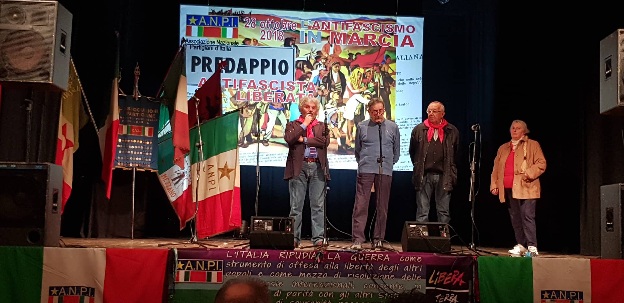 L’ANPI. Per fortuna che esiste. Per fortuna che tanti di noi ci sono stati, appassionati e contagiosi, nel Teatro comunale e per le vie del paese, riportando un po’ di normalità e ricordando qual è la verità storica a fronte delle menzogne dei seguaci del duce.