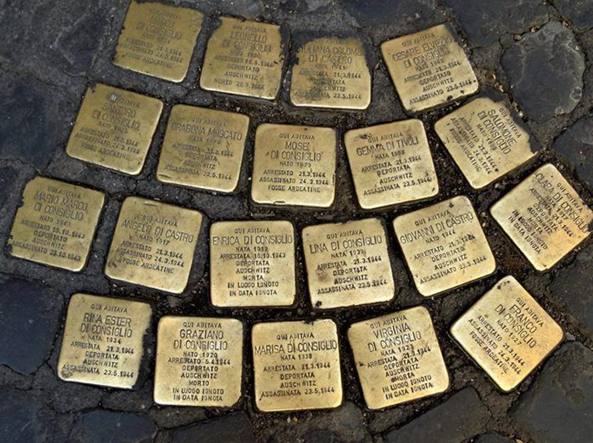 Quei cubi di cemento con targa d’ottone, grandi e profondi 10 cm, come i sanpietrini che lastricano le strade del centro capitolino, erano stati posti proprio per ricordare l’orrore della persecuzione contro gli ebrei. Ognuno ha inciso il nome della vittima con le date di nascita, di arresto, deportazione e morte (se conosciute).