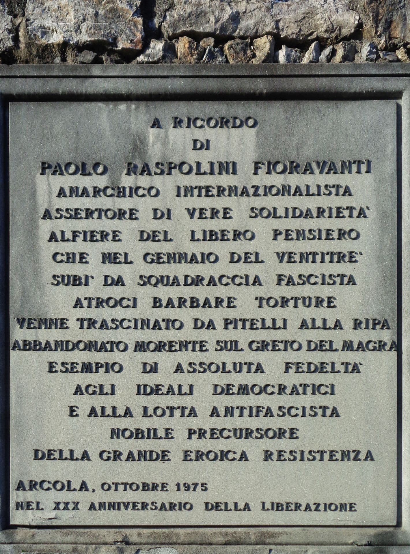Nell’articolo successivo, l’ultimo, Marsicano concludeva che “ben quattordici furono le vittime immolate in quei giorni ed oltre un centinaio i feriti di cui non pochi gravissimi subirono per l’occasione feroci vendette di carattere assolutamente privato”, aggiungendo che “altri numerosi cadaveri venivano rintracciati nei giorni successivi nel fiume Magra e presso Sarzana e Romito, dove la furia omicida ebbe a sferzarsi con particolare ferocia, in vendetta forse della tenace ed epica resistenza di queste popolazioni, agli assalti delle colonne dei vari Castellani, Dumini, Terzi e Bosero, che vi convergevano da Carrara e da Spezia” [21]. Tra questi cadaveri vi era quello di Fioravanti Paolo Raspolini detto Dante, nato a Romito Magra e residente al Guercio di Lerici, zio di Stefano Gabriele Paita, il giovane comunista ucciso nel corso della spedizione squadrista alla Serra. Così Alberto Incoronato ha raccontato la sua morte: “Dante venne malmenato e legato per i piedi con un cavo d’acciaio ad un’auto di proprietà dell’industriale De Biasi che abitava al Guercio, località sotto Pugliola, e che lì aveva una fornace per la calce dove lavorava come fuochista proprio Silvio Carro [un fascista di Pugliola, NdA], e a comandare la squadra c’era proprio il figlio Francesco detto ‘Fernando’, Ras di Pugliola. La squadra era composta da gente della zona fra i quali oltre al Carro, Cesare Lupi, Valentino Novelli, Bellucci di Arcola, Rovagna di Pugliola e Pugnatin [Umberto Cresci, nda]; e da gente che veniva da fuori come Froselli Gino di Piombino. Dante fu trascinato fino alla Ripa, fra Fornola e Bottagna, sotto Vezzano, sul greto del fiume, dove, già duramente provato, venne finito con due colpi di pistola, uno alla tempia ed uno al cuore, così, per essere sicuri di ucciderlo, e poi svariati colpi di coltello sia dati di punta che di taglio. […] Qualcuno dice che come estrema umiliazione in bocca gli avevano messi i propri genitali” [22].
