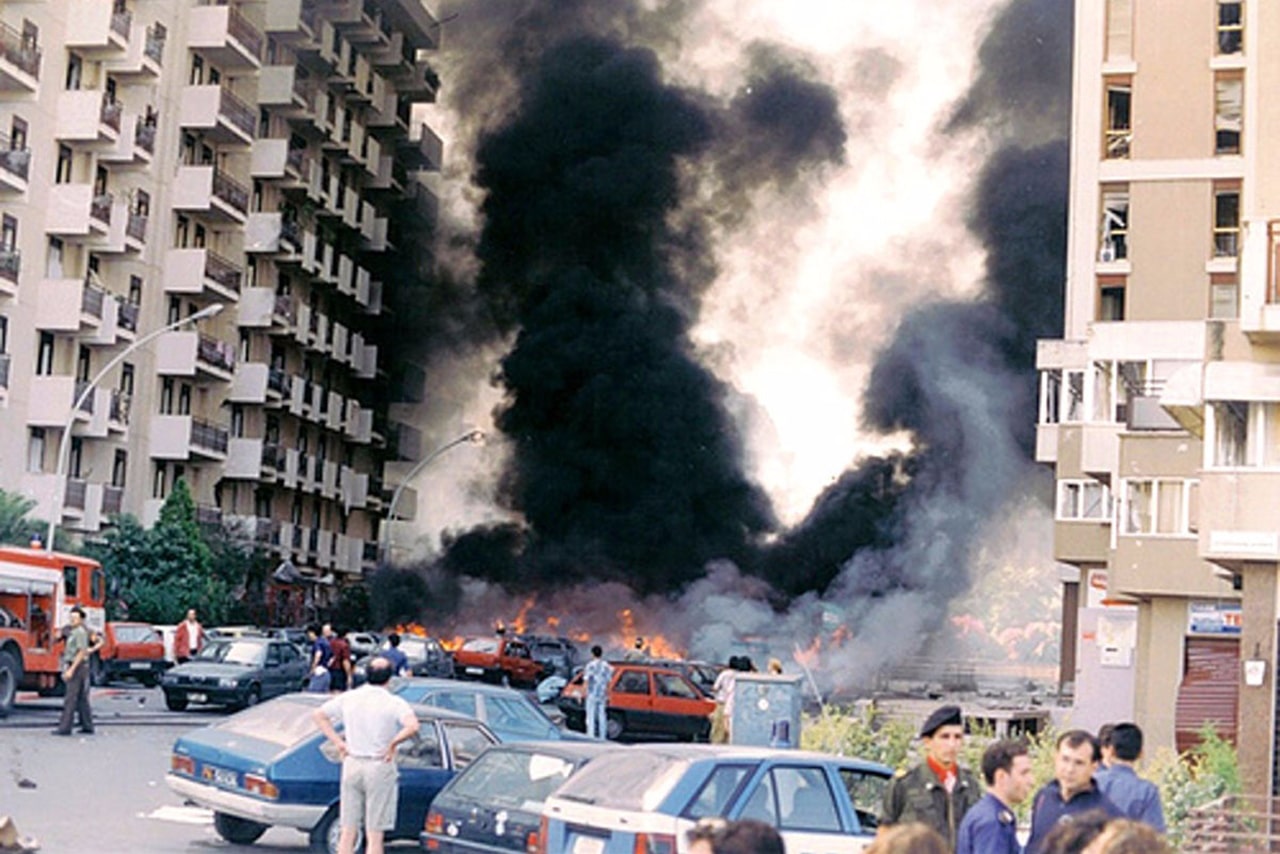 L’arresto, il 15 gennaio 1993, di Totò Riina non pone fine alla strategia eversiva del terrorismo di matrice mafiosa, che inanella proprio in quell’anno una serie di attentati e di stragi. Il 14 maggio una bomba scoppia, in via Ruggero Fauro a Roma, per liquidare il noto conduttore televisivo Maurizio Costanzo, che invece rimane miracolosamente illeso. Nella notte tra il 26 e il 27 maggio esplode una Fiat Fiorino sotto la Torre dei Pulci a Firenze, in via dei Georgofili, uccidendo cinque persone. Nella notte del 27 luglio, alla stessa ora, un’autobomba a Milano in via Palestro falcia tre vigili del fuoco, un vigile e un passante, a Roma due deflagrazioni danneggiano gravemente la chiesa di San Giorgio al Velabro e la basilica di San Giovanni al Laterano. In quelle ore il presidente del Consiglio Carlo Azeglio Ciampi tenta invano di entrare in contatto con Palazzo Chigi e scopre che i centralini della sede del governo sono stati messi fuori uso. Tra le ipotesi che circolano non si esclude la pista di un attacco al cuore dello Stato. Ad ogni modo, il 31 ottobre, fortunosamente non va a segno l’attentato più devastante concepito dalla mafia. Il dispositivo elettronico per innescare l’esplosivo di un’autobomba si inceppa e così non si disintegrano i furgoni dei carabinieri in servizio allo stadio Olimpico di Roma durante la partita Lazio-Udinese [25].
