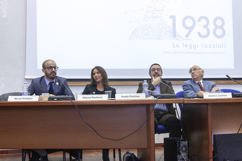 Le leggi razziali antiebraiche del 1938 non furono una semplice imitazione delle leggi naziste sulla razza, furono la cartina di tornasole del fascismo, il disvelamento di un’Italia autoritaria e razzista che esisteva da sempre e che, in qualche modo, esiste ancora. La limitazione delle libertà e dei diritti civili subita dagli ebrei e che fu il preludio alle atroci persecuzioni antisemite nazifasciste – analizzata negli interventi di Paolo Pezzino, presidente dell’Istituto nazionale “Ferruccio Pari”, e di Tullia Catalan, docente di Storia dell’Ebraismo all’Università di Trieste – trovò uguale applicazione nei confronti degli zingari e degli omosessuali.