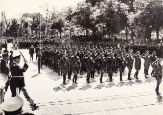 Il 1° aprile del 1939, la Repubblica si arrende formalmente e Franco farà sfilare le sue truppe a Madrid, salutandole con la mano levata come i fascisti e i nazisti. In testa alle “falangi” spagnole, marciano, appunto, italiani e tedeschi.
