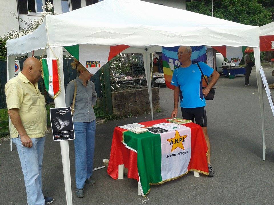 Sezione ANPI Viggiù-Saltrio-Clivio al mercato di Saltrio (provincia di Varese), in piazza Risorgimento per la giornata antifascista