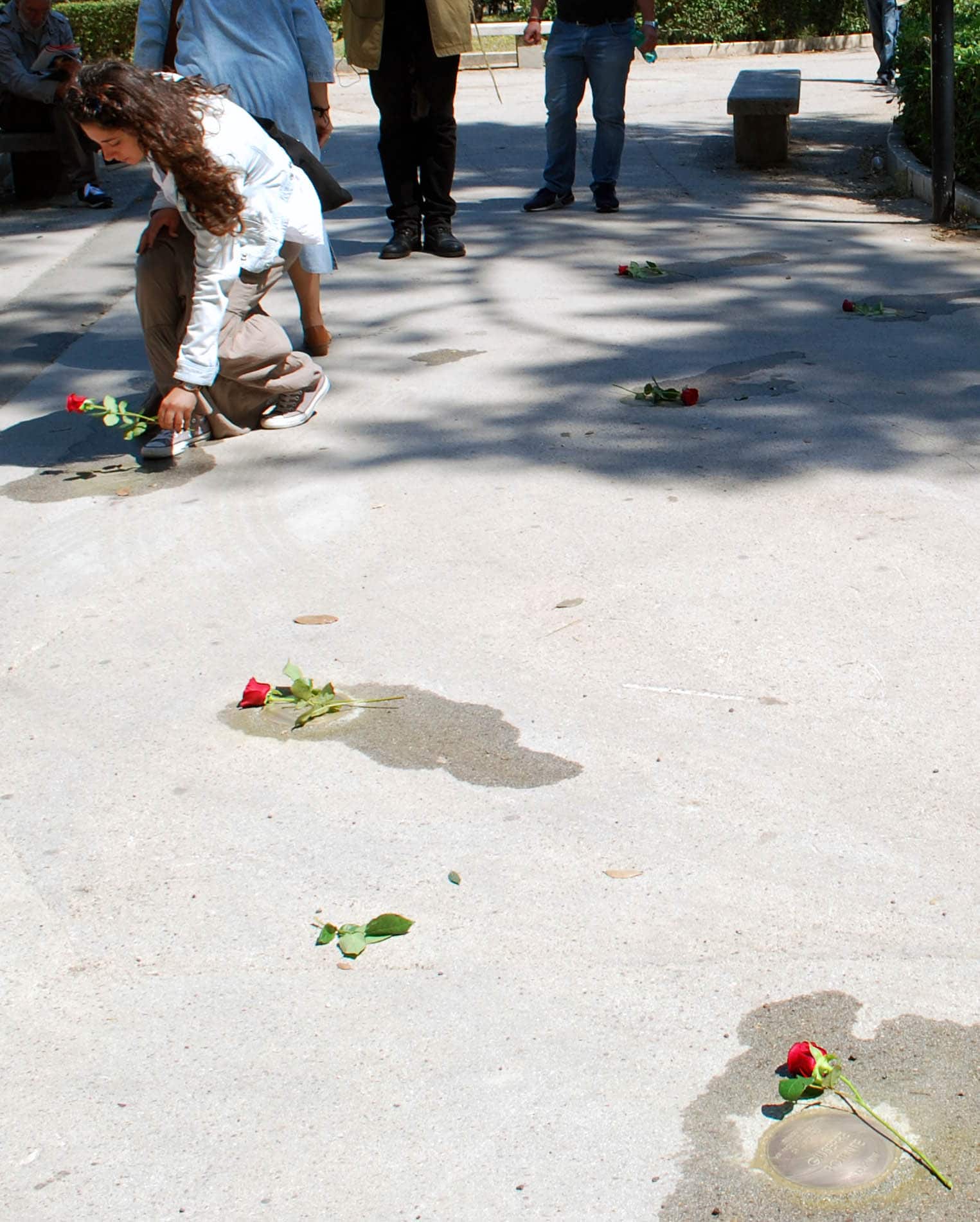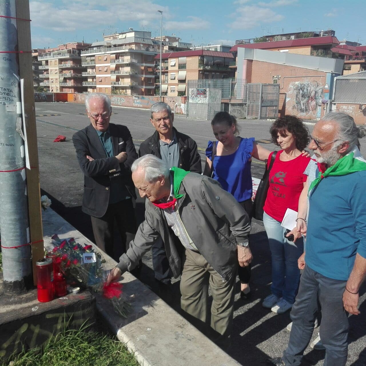 ROMA, i partigiani portano un fiore sul luogo del rogo dove sono morte le tre sorelline rom