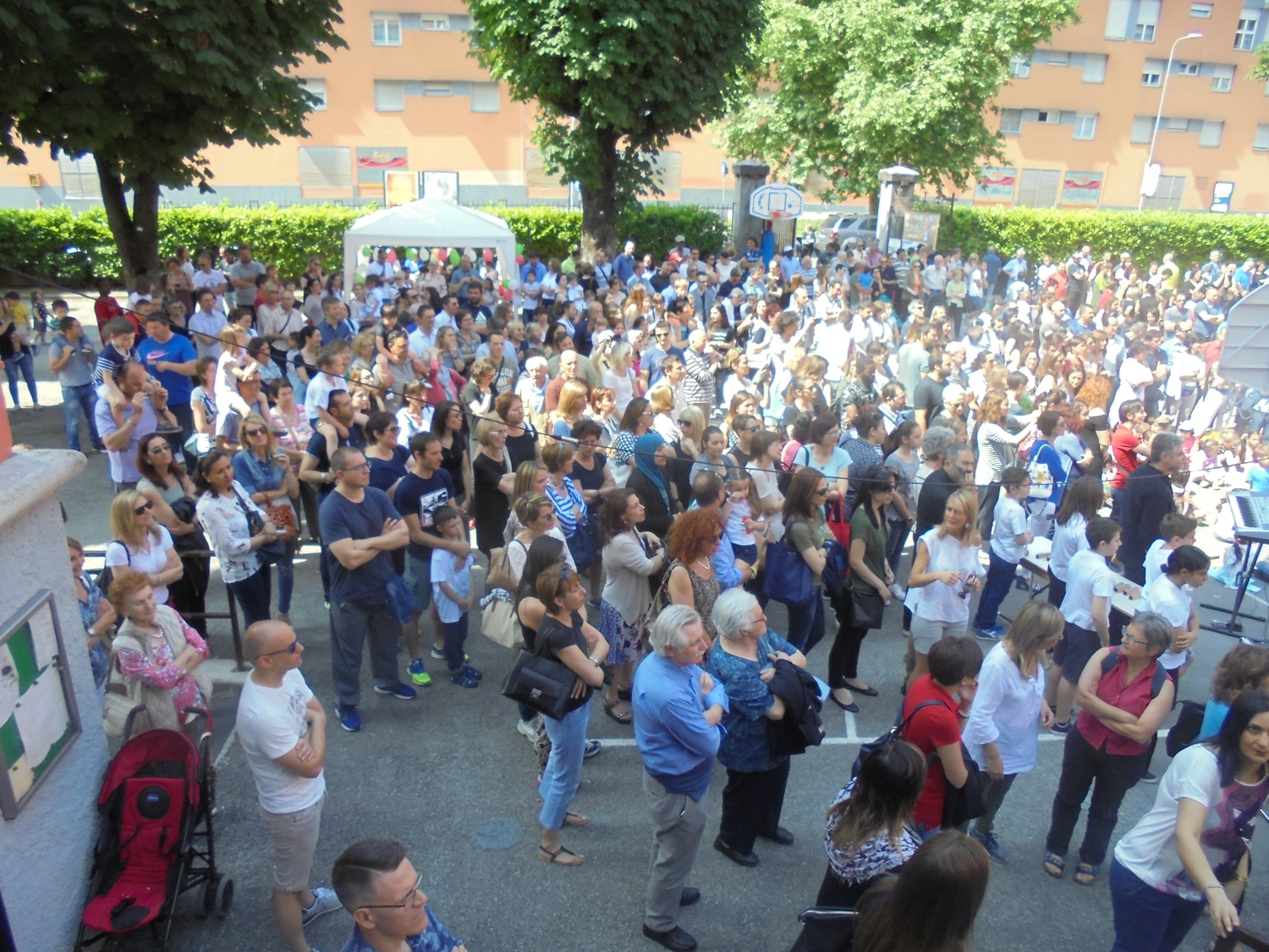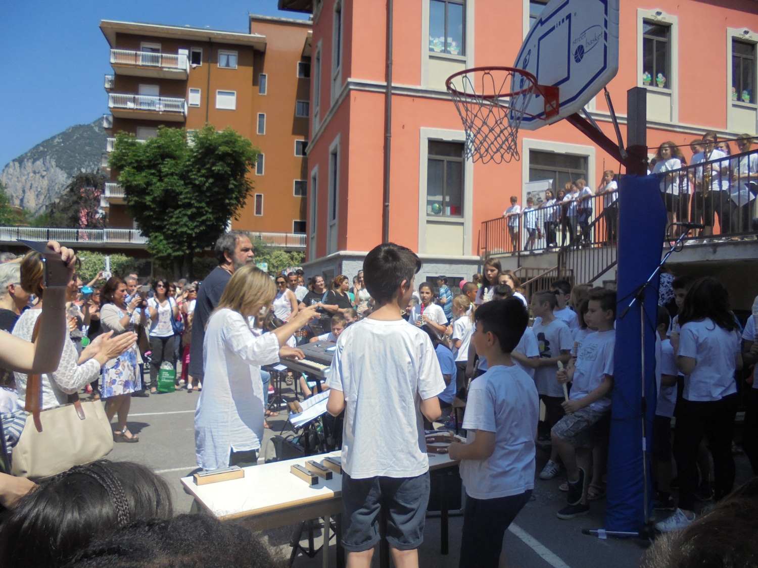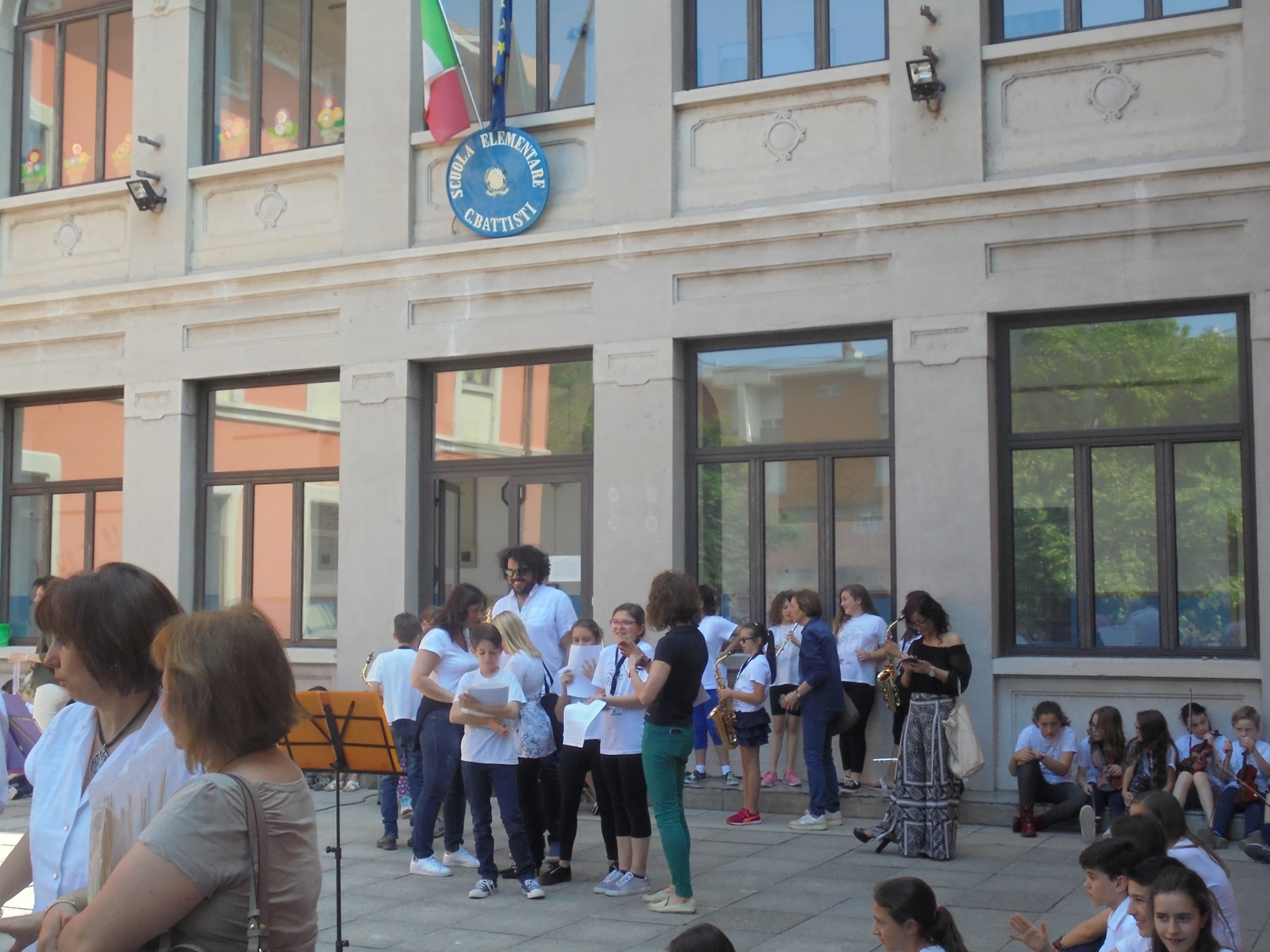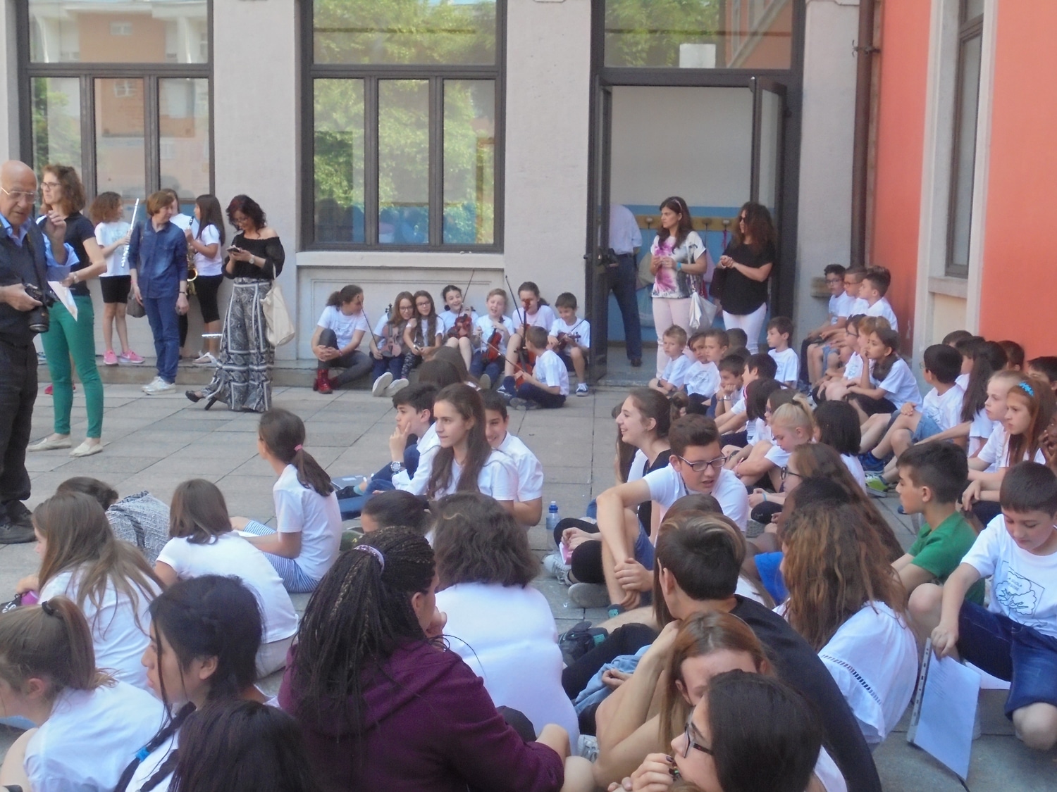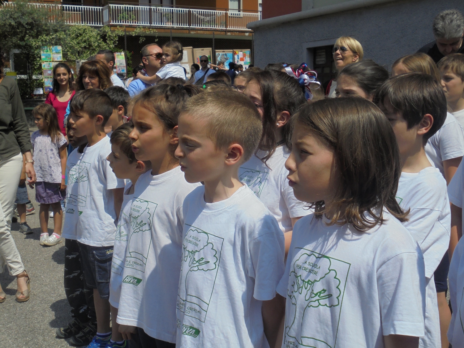 Un bel momento dell’iniziativa con gli alunni di una terza elementare, guidati dalla maestra Menita Carozza, iscritta all’ANPI, che hanno recitato una storia partigiana e cantato “Bella ciao” a cappella