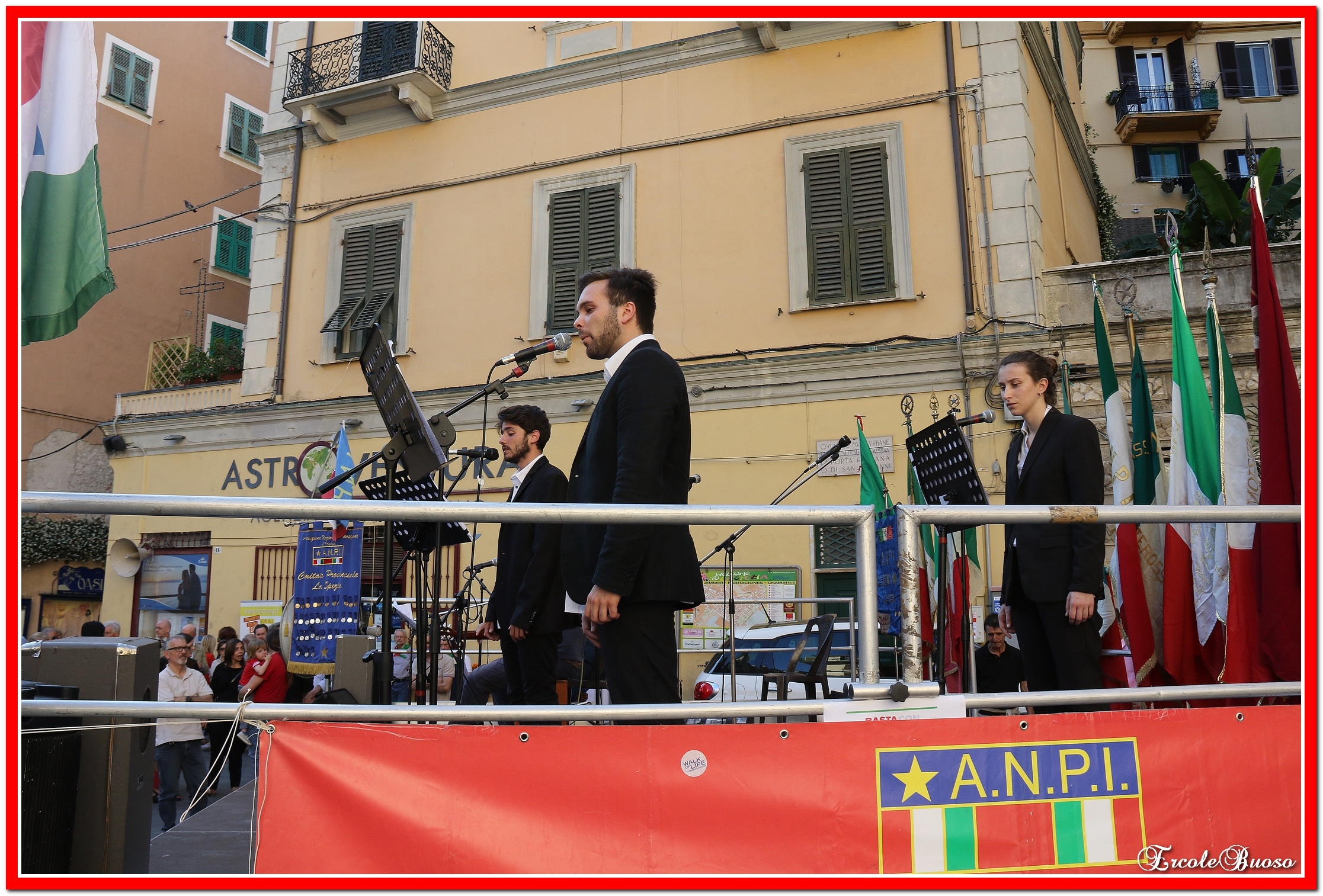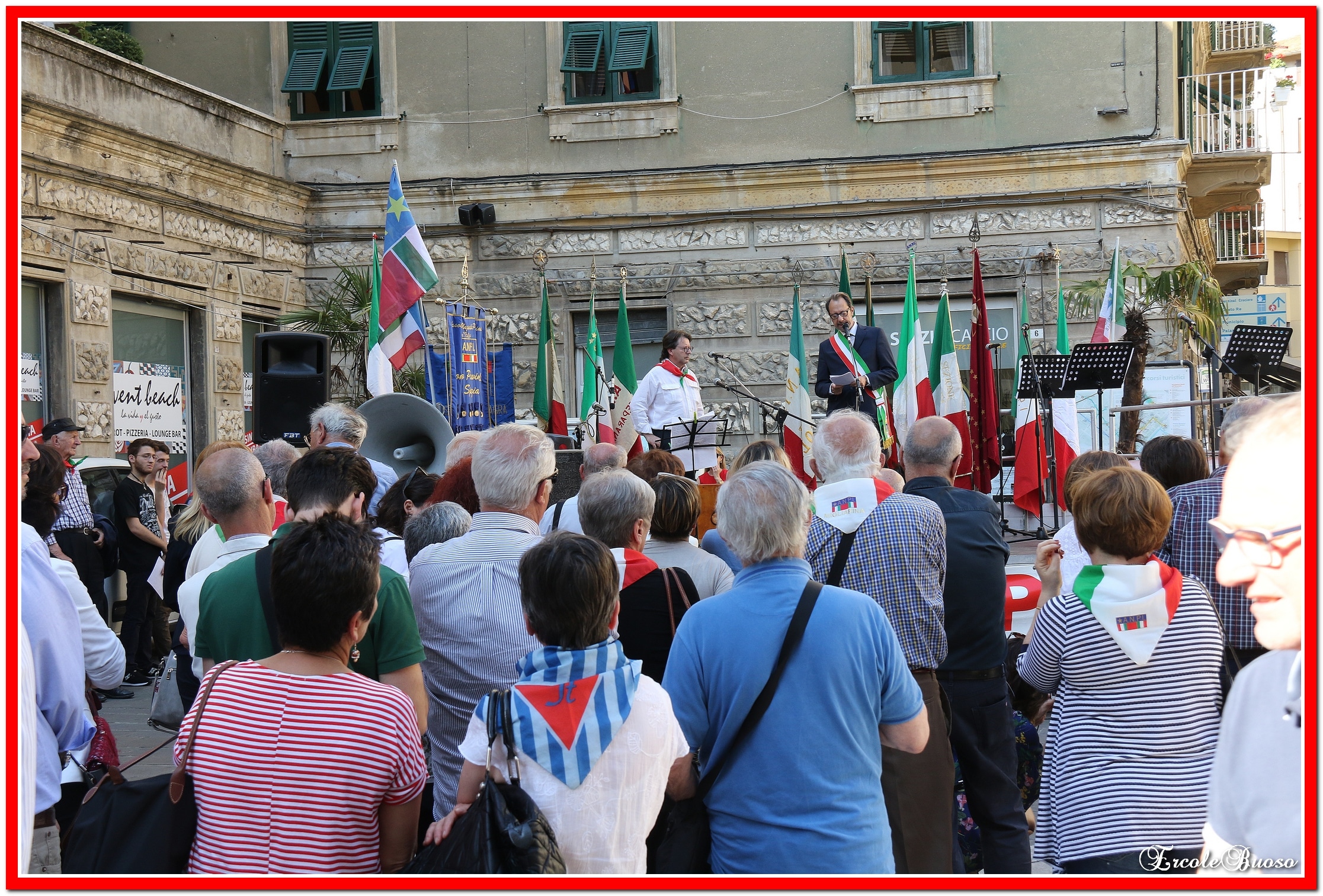 Alla realizzazione del presidio di Albenga hanno collaborato le Sezioni ANPI di Andora, Alassio/Laigueglia, Albenga, Leca d’Albenga, Ceriale Borghetto Santo Spirito, Loano. la CGIL di Albenga, il Circolo ARCI-Brixton di Alassio