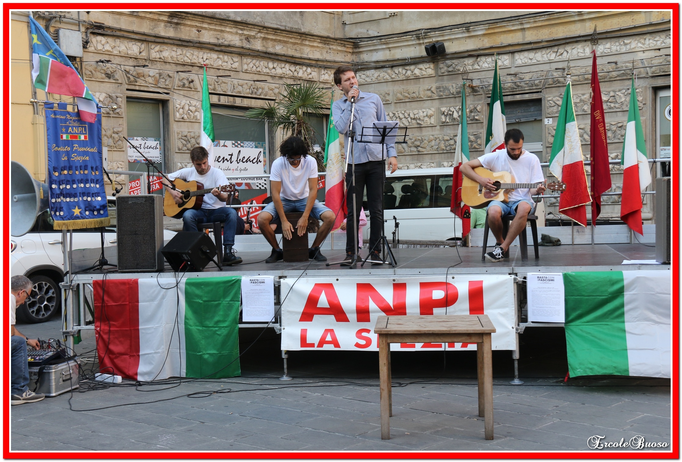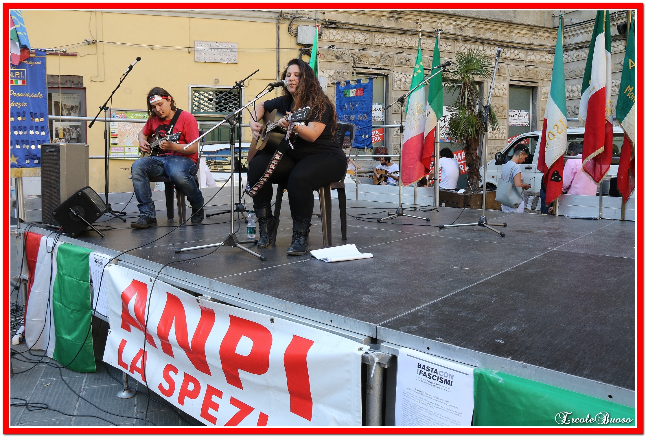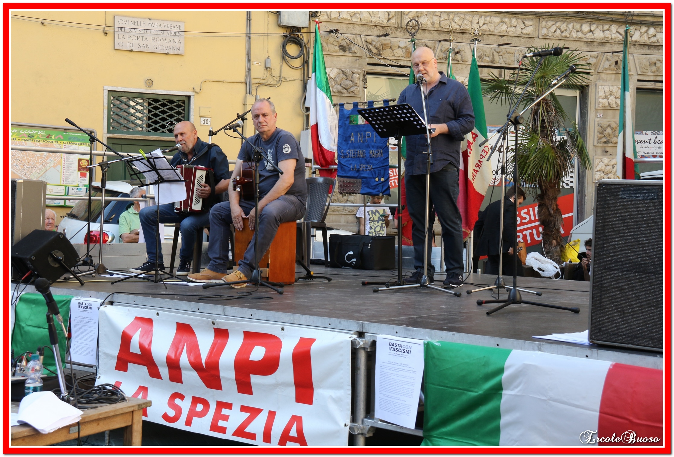 A La Spezia in piazza Bastione presidio antifascista con musica e letture sulla Resistenza, sull’Antifascismo e sulla Costituzione. L’iniziativa è stata promossa dall’ANPI in collaborazione con l’ANED, l’ARCI e la CGIL