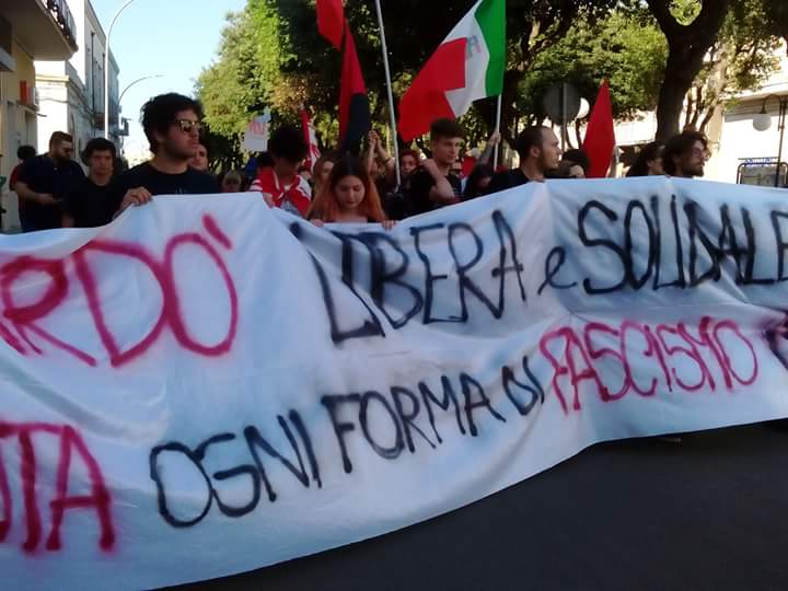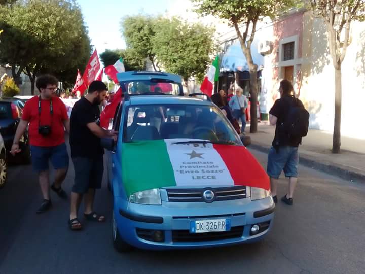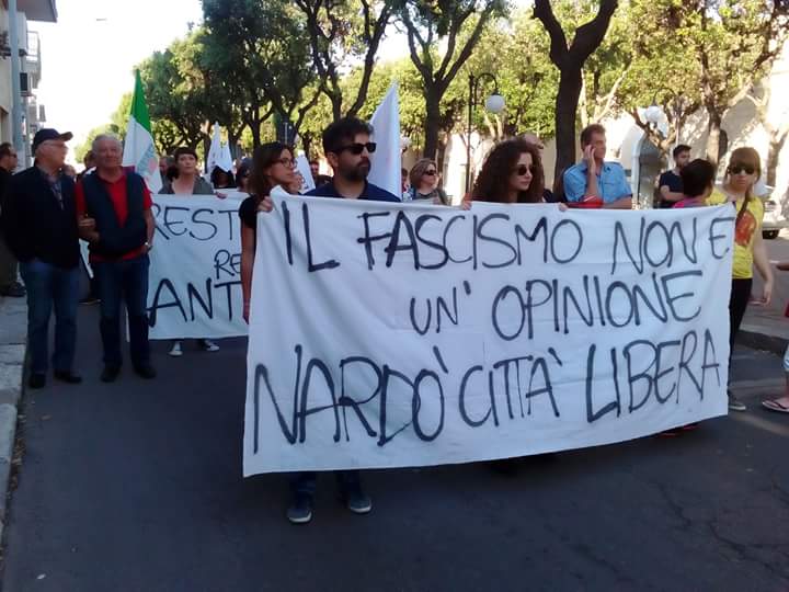 Hanno aderito: Coordinamento Regionale Antifascista, sezioni ANPI di Galatone, Arci Nardò Centrale, Unione degli Studenti Lecce e provincia, Nardò Bene Comune, Link Lecce, Rete della Conoscenza Lecce, Diritti a Sud, Studenti Indipendenti, Terra Rossa, Arcigay Salento, Salento pride, LeA-Liberamente e Apertamente, Lecce Bene Comune, Articolo 1, Sinistra Italiana, Giovani Democratici, Rifondazione Comunista, Monteroni a Sinistra (MaS), R&D Vibes, ARCI Lecce, Lecce Bene Comune, FLC-CGIL, Sinistra Anticapitalista Taranto, ARCI Zei