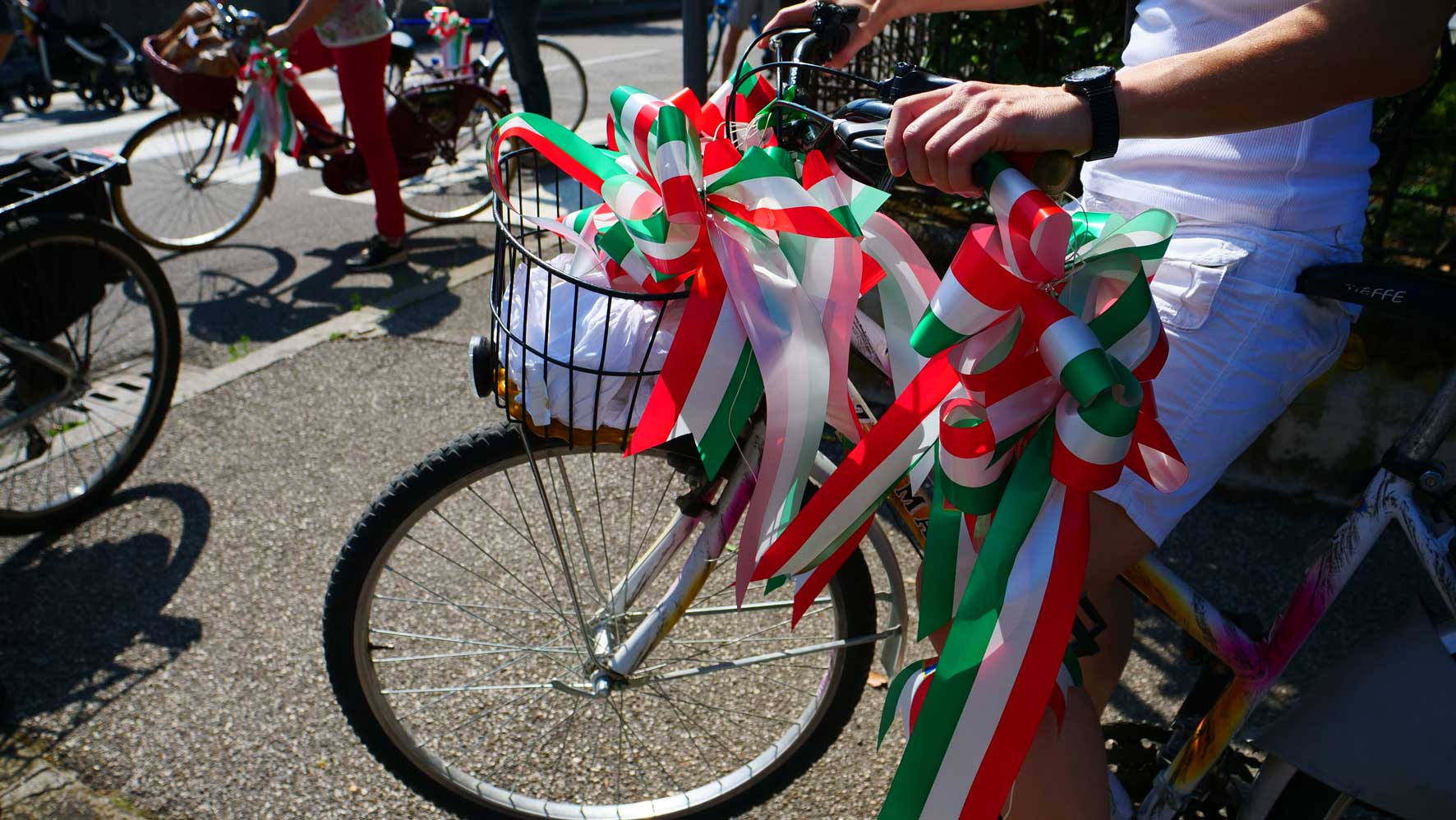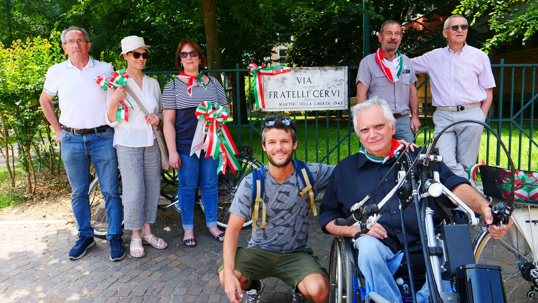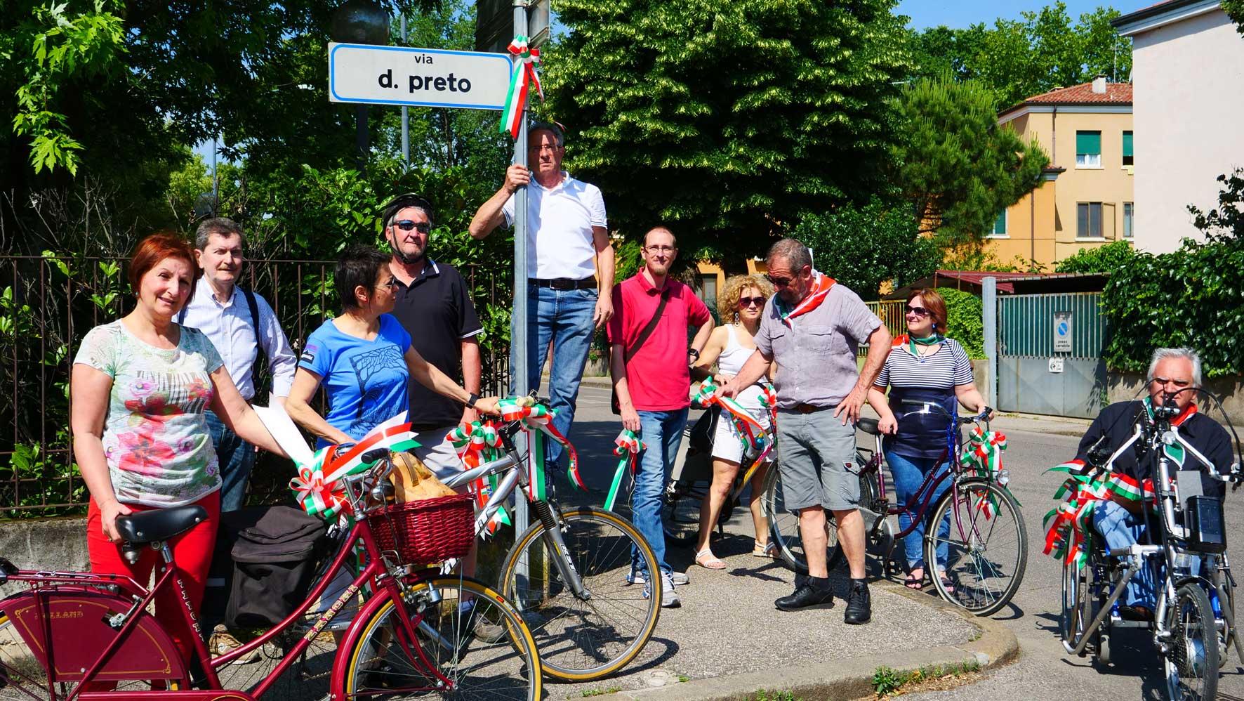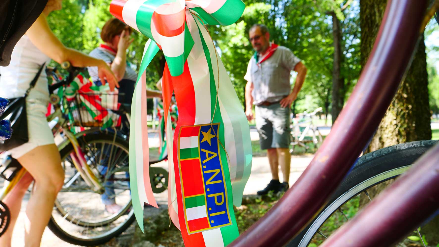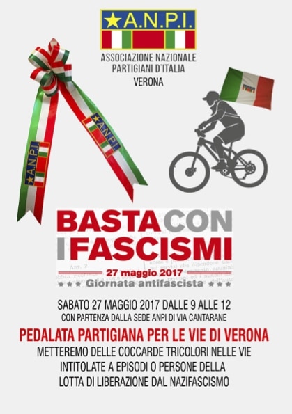 Pedalata Partigiana a Verona. 40 coccarde tricolori con la scritta ANPI in altrettante vie e siti della città