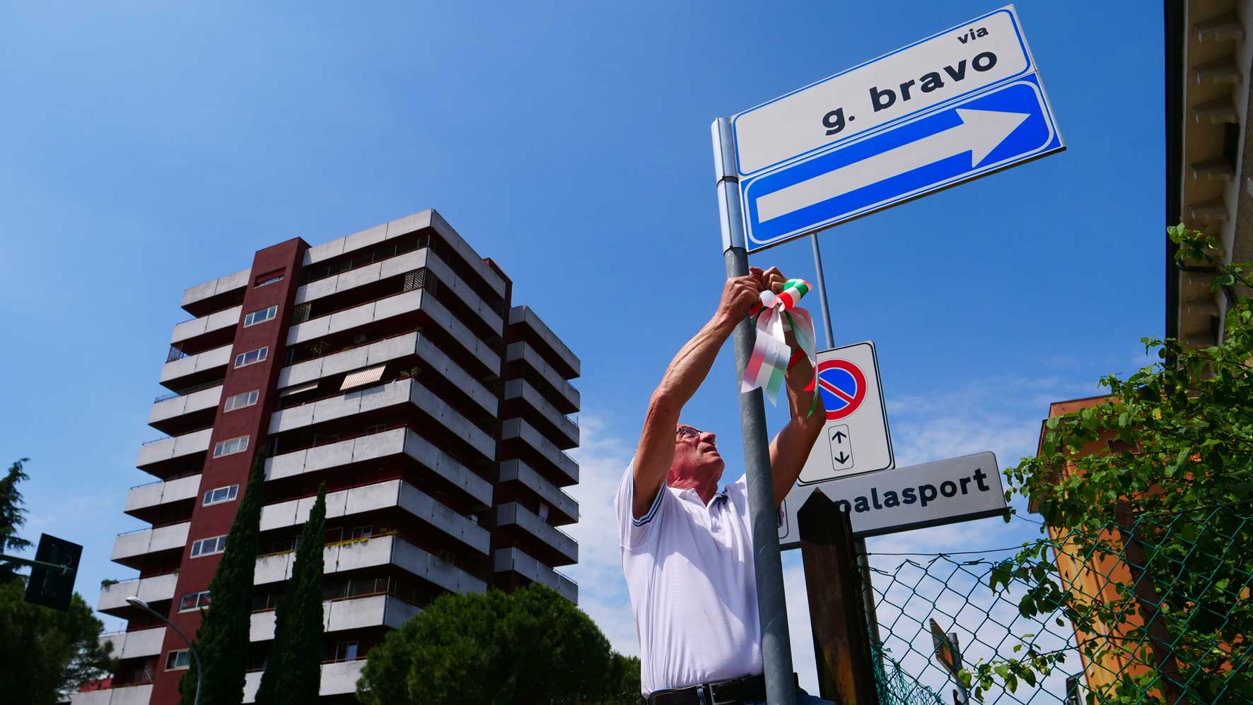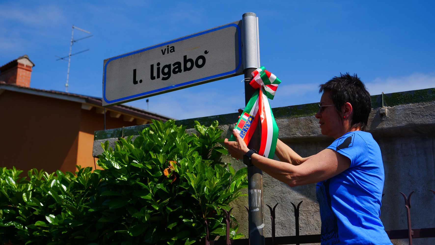È stata rinnovata la targa toponomastica e apposta una corona di fiori