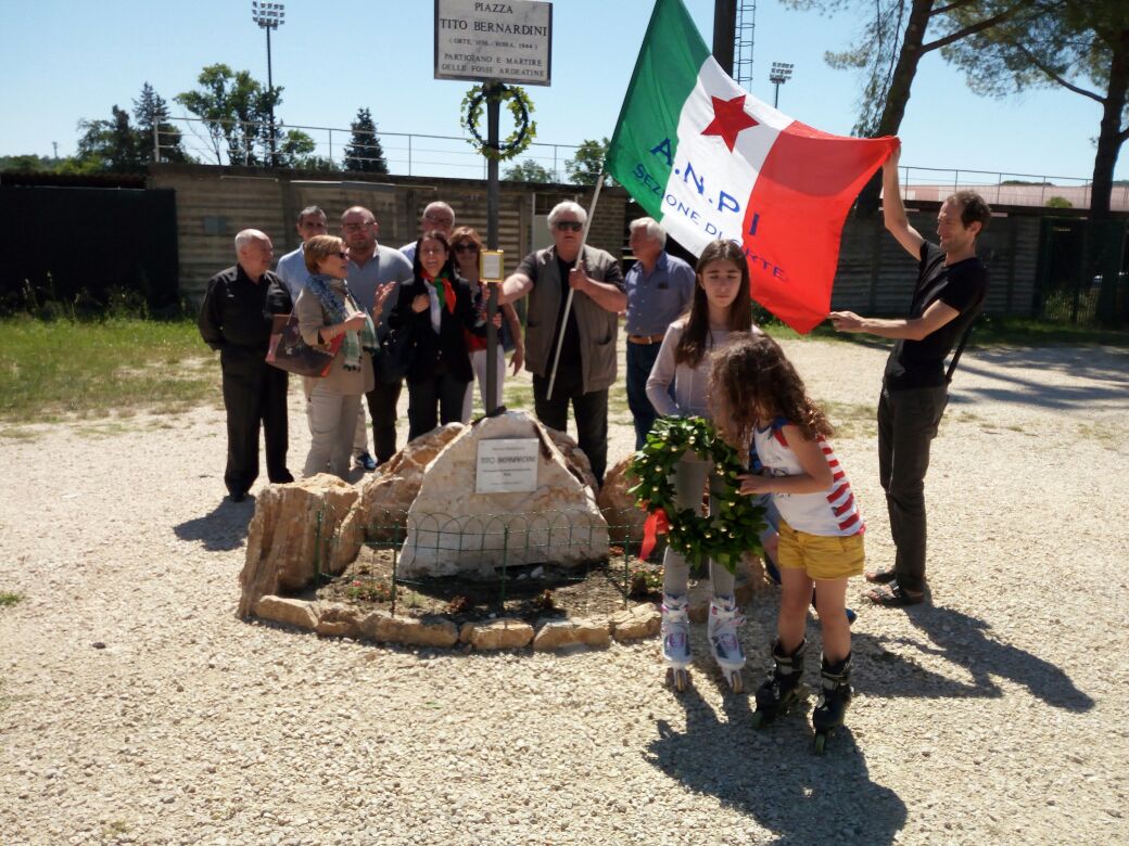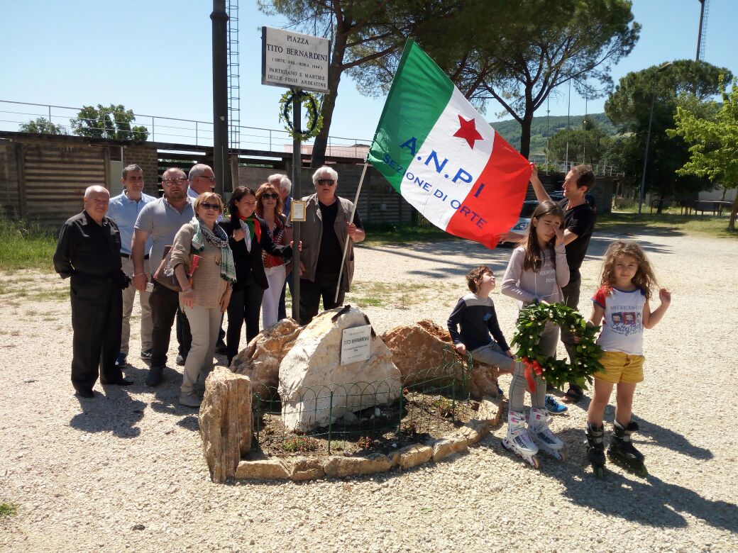 A Orte, fiori al Monumento a Tito Bernardini, nella piazza che su iniziativa della locale sezione ANPI gli è stata intitolata nello scorso mese di ottobre. Il partigiano e Martire, fu ferocemente torturato dai nazifascisti prima di essere fucilato il 24 marzo del 1944 alle Fosse Ardeatine