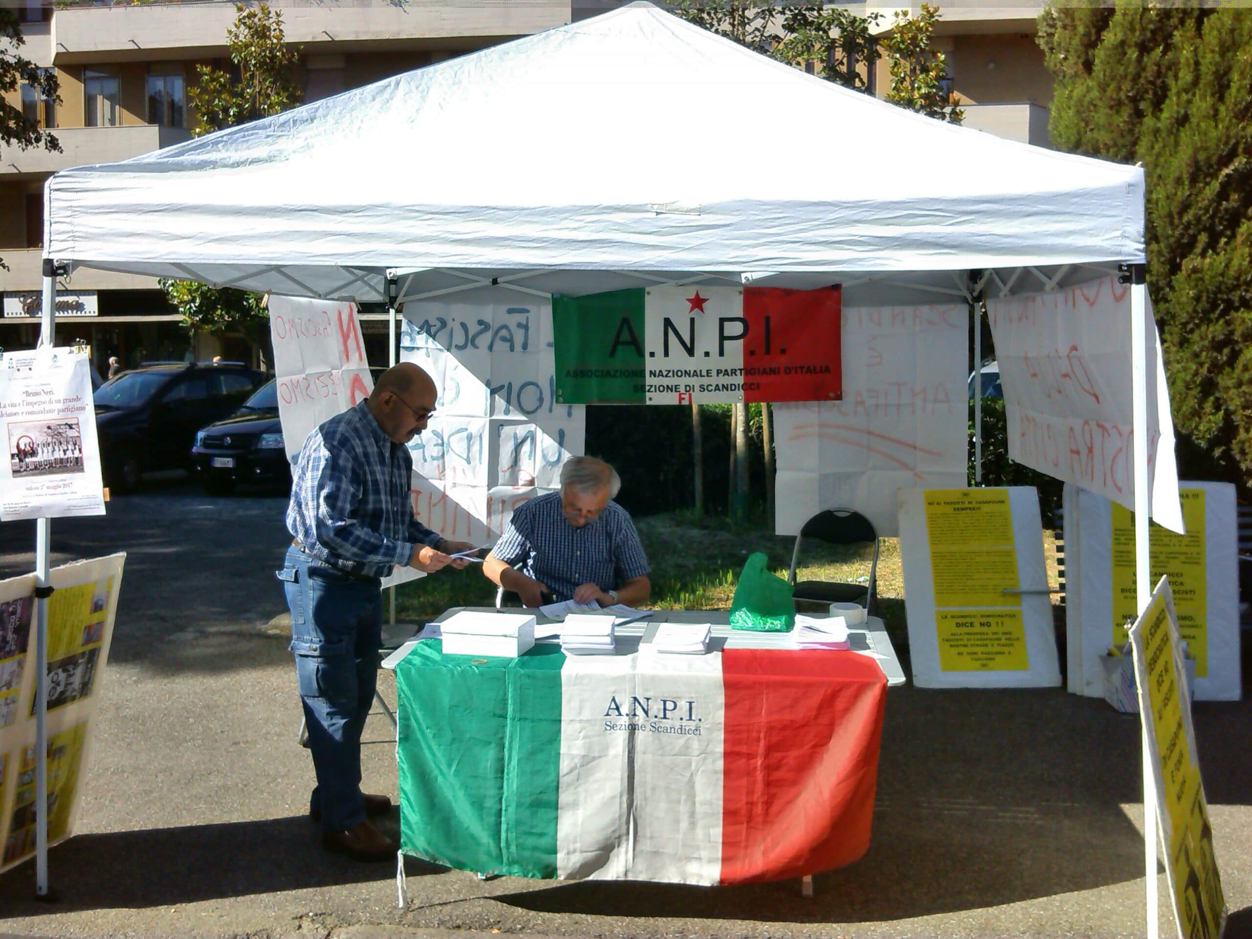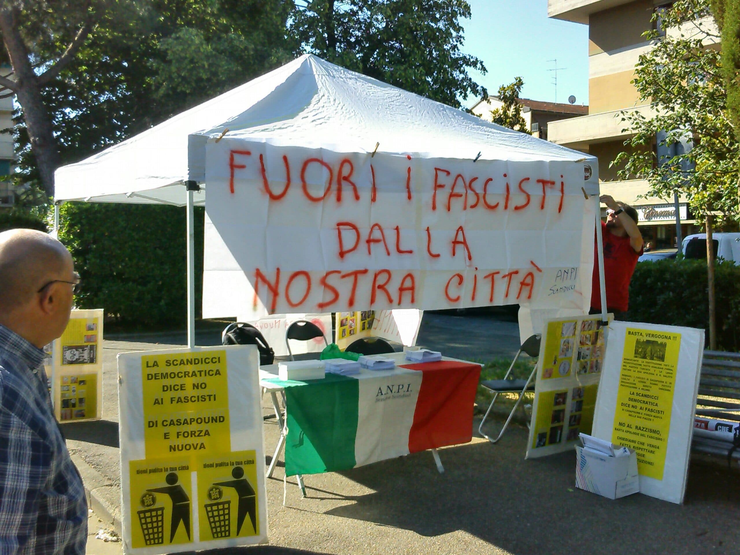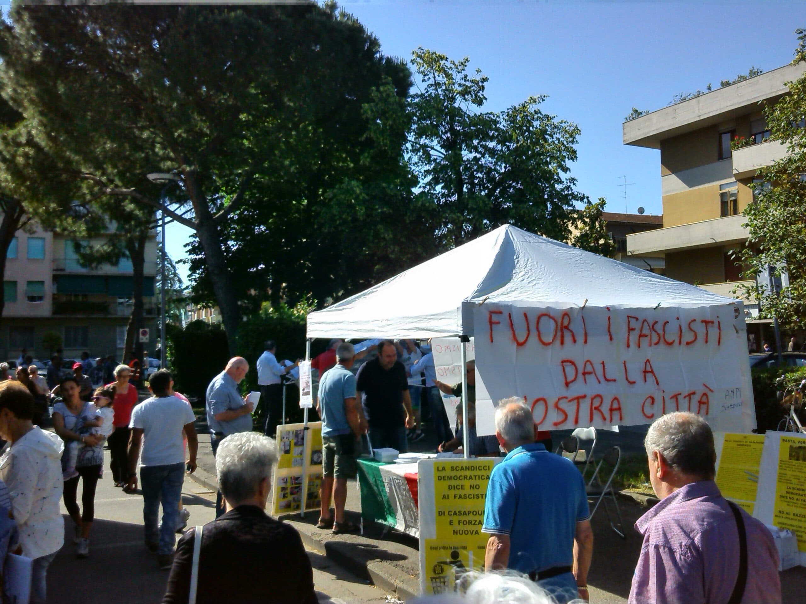 Scandicci: alcune foto dell’iniziativa organizzata nella piazza del mercato dalla Sezione “Sergio Fallani”. Oltre 900 i volantini e i dossier antifascisti distribuiti ai cittadini