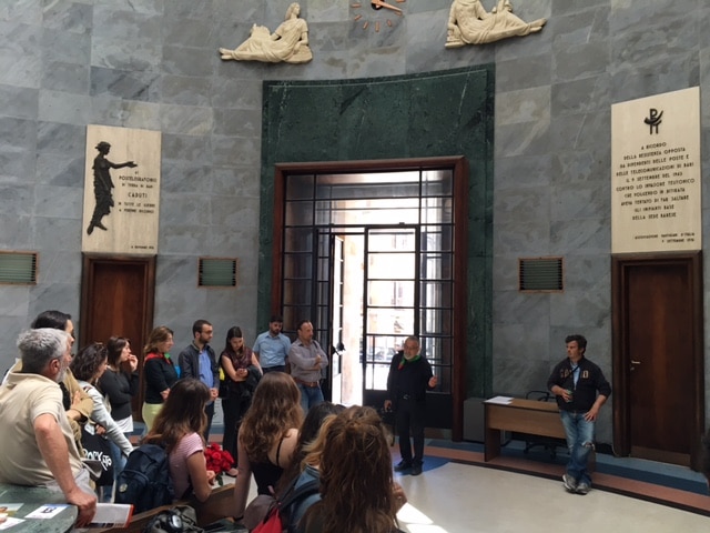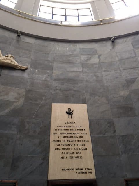 Nell’ex Palazzo delle Poste una lapide ricorda la Resistenza che il 9 settembre 1943 gli impiegati postelegrafonici opposero, armi in pugno, ai paracadutisti della Wehrmacht, difendendo dalla distruzione gli impianti delle telecomunicazioni