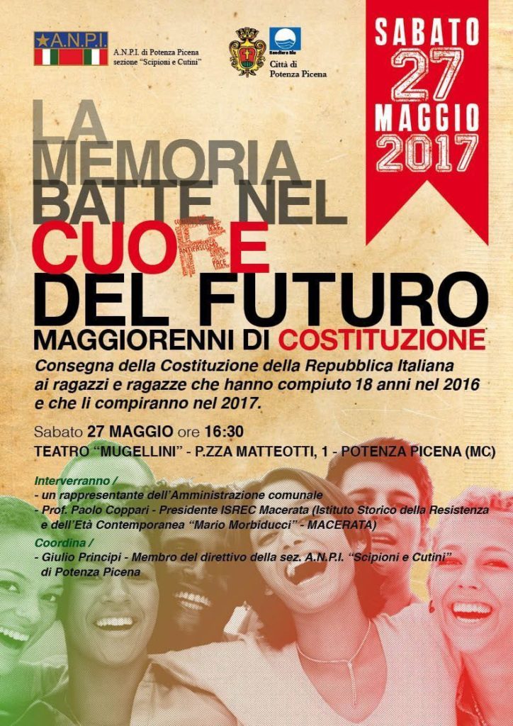 “La memoria tradita, La Seconda guerra mondiale nel Mezzogiorno d’Italia”. Alla fine dell’incontro sono state distribuite decine e decine di copie della Costituzione con l’introduzione del Presidente Nazionale ANPI, Carlo Smuraglia