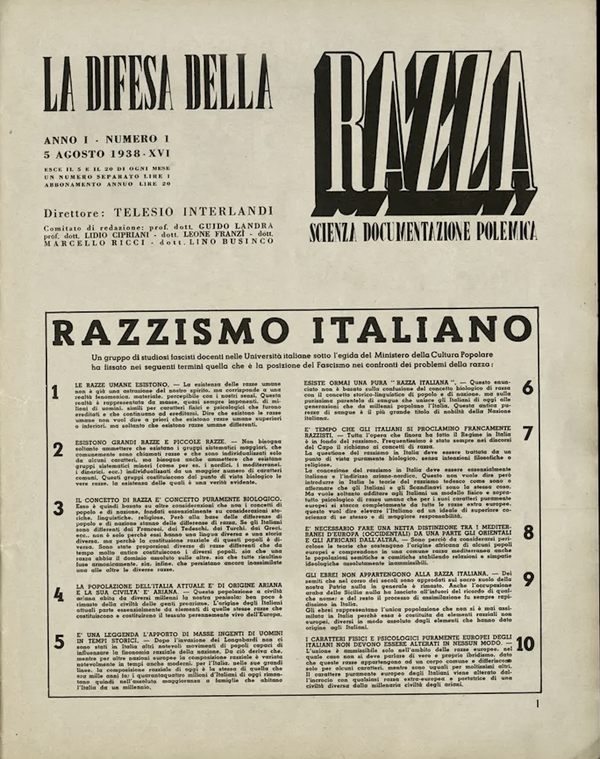 Circa un anno dopo, il 14 luglio 1938, venne promulgato il famigerato Manifesto della Razza, e a partire da settembre le leggi razziali colpirono anche gli ebrei libici, sancendone inferiorità giuridica e morale. La legislazione antisemita venne sempre più rafforzata, fino a decretare anche per gli ebrei libici la deportazione nel 1942.
