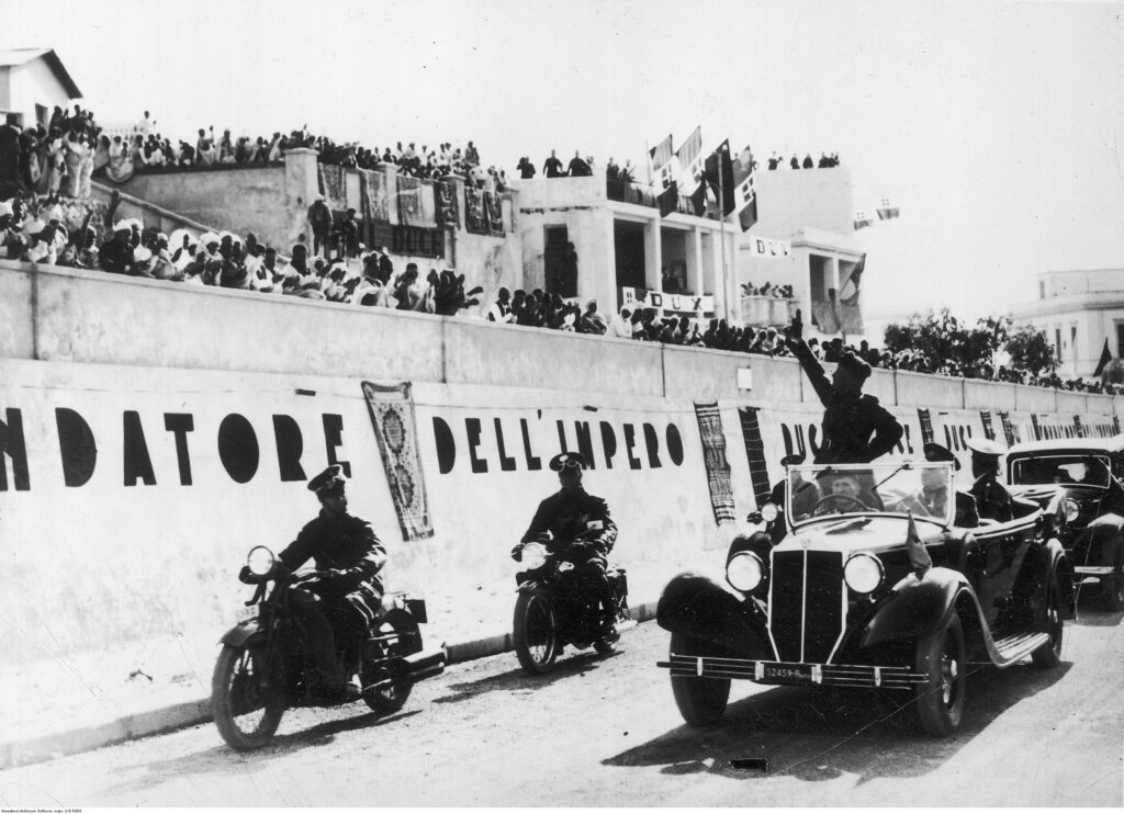 Nel 1911, quando il Regno d’Italia entrò in possesso della Libia, Tripolitania Cirenaica, gli ebrei vivevano in quel luogo già da molti secoli. Due anni dopo, il Regio Decreto n.315 concesse la cittadinanza italiana a gran parte della popolazione locale sia arabo-musulmana, sia ebraica, che rappresentava una minoranza rispetto alla prima. Benito Mussolini, tra il 12 e il 21 marzo 1937, nonostante vi si fosse già recato in precedenza, effettuò una visita in Libia, nel corso della quale rassicurò gli ebrei dicendogli: «L’Italia considera gli ebrei sotto la sua tutela, nessuna discriminazione razziale o religiosa è nella mia mente, restando fedele alla politica di eguaglianza di fronte alla legge e di libertà di culto». Tuttavia nella medesima visita, Mussolini si proclamò difensore dell’Islam, dichiarando che i musulmani libici dovevano sentirsi “fieri” di essere sottomessi all’Italia fascista, che avrebbe garantito la loro protezione. Inoltre per l’occasione innalzò al cielo la spada dell’Islam, ricevuta dalla popolazione araba.