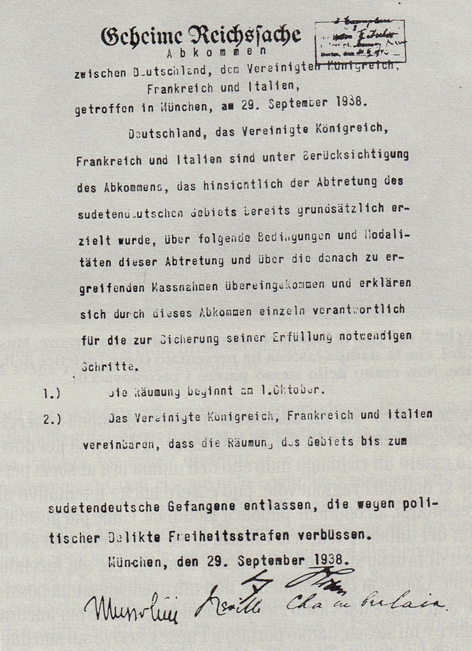 Per la storia: Hitler aveva stilato il suo messaggio poche ore dopo un incontro con i generali Keitel e von Brauchitsch, il capo del Comando supremo della Wehrmacht e il comandante in capo dell’esercito, per definire l’ordine di battaglia delle truppe che avrebbero dovuto invadere la Cecoslovacchia. Era ormai certo che la Wehrmacht avrebbe dovuto combattere contro la sola Cecoslovacchia e von Brauchitsch aveva riferito che 37 divisioni tedesche erano disponibili per attaccare la piccola repubblica ceca.