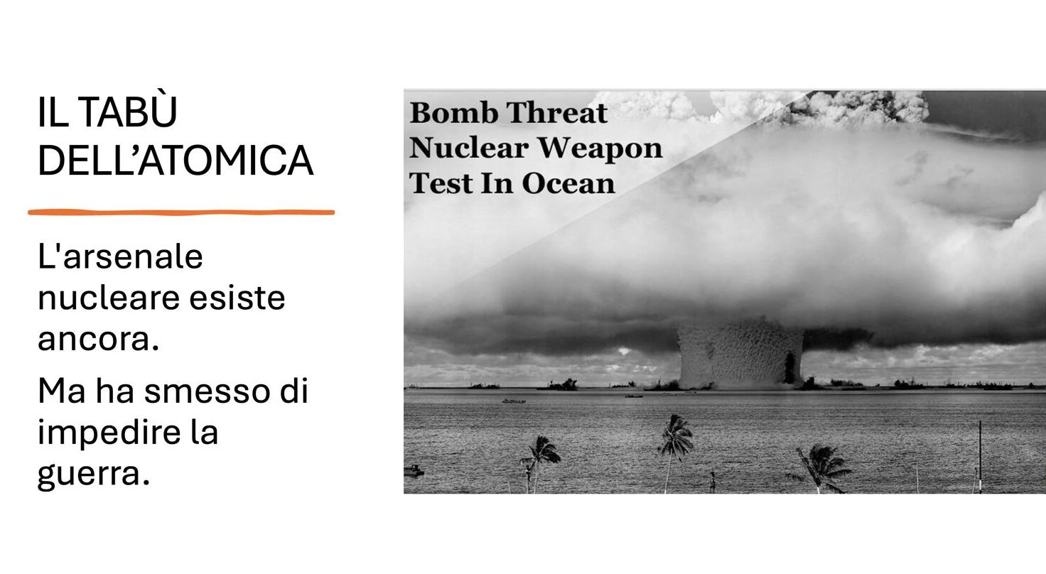 Non è un tema astratto. L’Italia ospita armi nucleari Nato sul proprio suolo, in piena continuità con una dottrina della deterrenza che si basa sulla minaccia di un first strike. Un arsenale che esiste, che viene periodicamente modernizzato – le B61-12 che stanno sostituendo le vecchie B61 – e che nel dibattito pubblico è sparito: non è nei telegiornali, non nelle aule parlamentari, non nelle campagne elettorali. Oggi questa cecità ha un costo più alto. Perché il conflitto in corso in Medio Oriente riapre con brutalità il tema del first strike nucleare israeliano. Israele possiede un arsenale atomico stimato in circa 90 testate, mai dichiarato, mai sottoposto ad alcun trattato internazionale di controllo – le cosiddette “bombe illegali” di una potenza che non ha mai firmato il Trattato di non proliferazione. Con la guerra in Iran che entra nella sua quarta settimana, con Netanyahu che rivendica autonomia decisionale rispetto agli stessi Stati Uniti, e con un nuovo leader supremo iraniano appena insediato dopo la morte di Khamenei, il rischio di escalation nucleare non è più uno scenario da simulazione accademica.