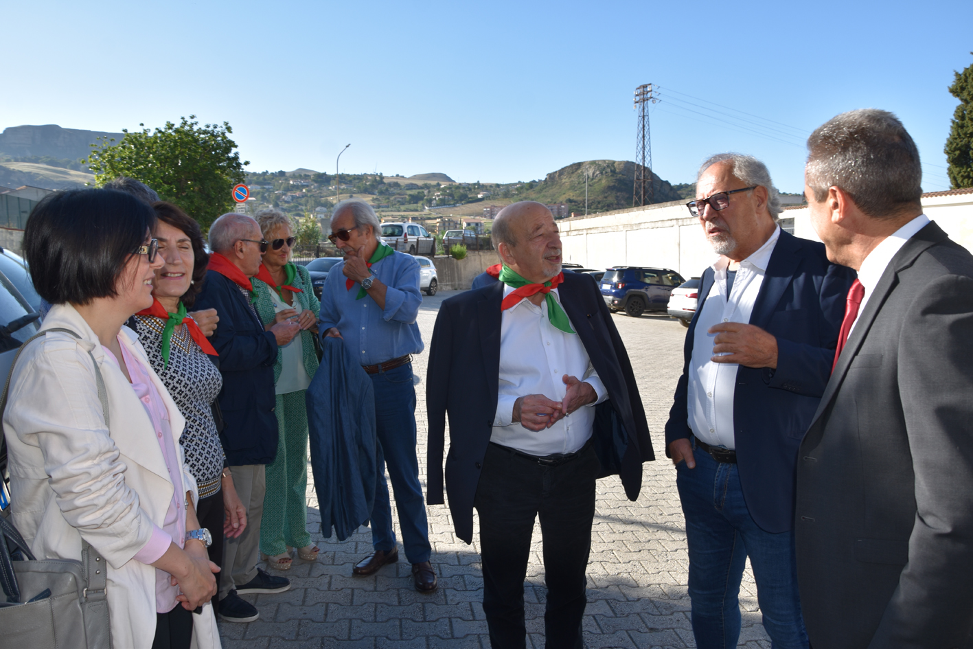 Lungo corso Bentivegna, la delegazione ha avuto modo di apprezzare le “pietre d’inciampo della memoria”, proposte dalla Cgil e collocate sul marciapiedi di fronte ad un grande murale del volto del capo dei Fasci dei lavoratori Bernardino Verro.