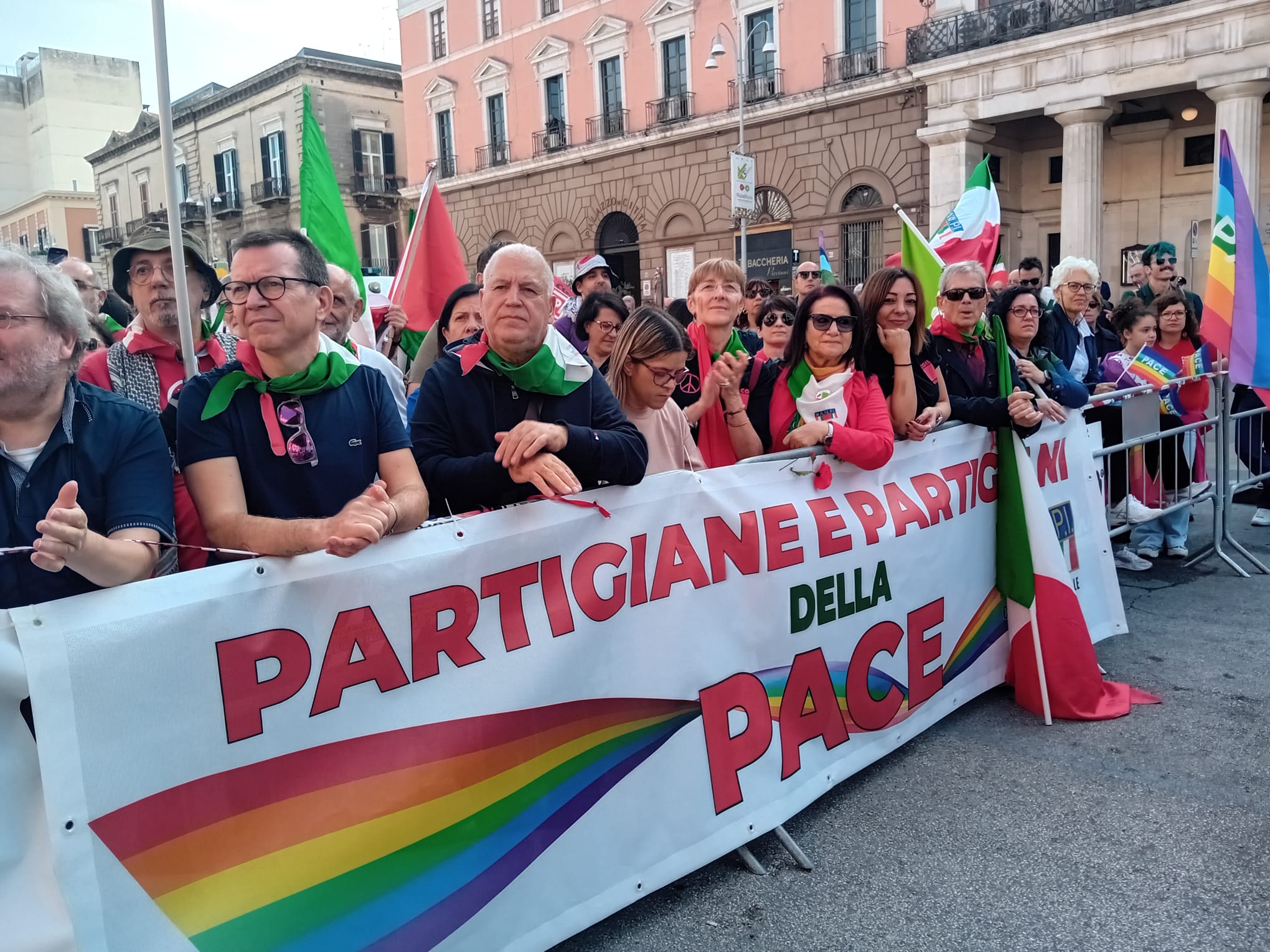 Dal palco del capoluogo pugliese, il presidente nazionale Anpi, Gianfranco Pagliarulo, parlando a nome dell’associazione tutta, ha detto: «È ovvio: o c’è la pace, o c’è la guerra. Noi pensiamo che la guerra sia una follia, come è già dimostrato da due anni di sangue in Ucraina e dai massacri in corso in Medio Oriente. Nessun nuovo ordine mondiale può venire da un’estensione delle guerre, perché sarebbero tutti sconfitti».