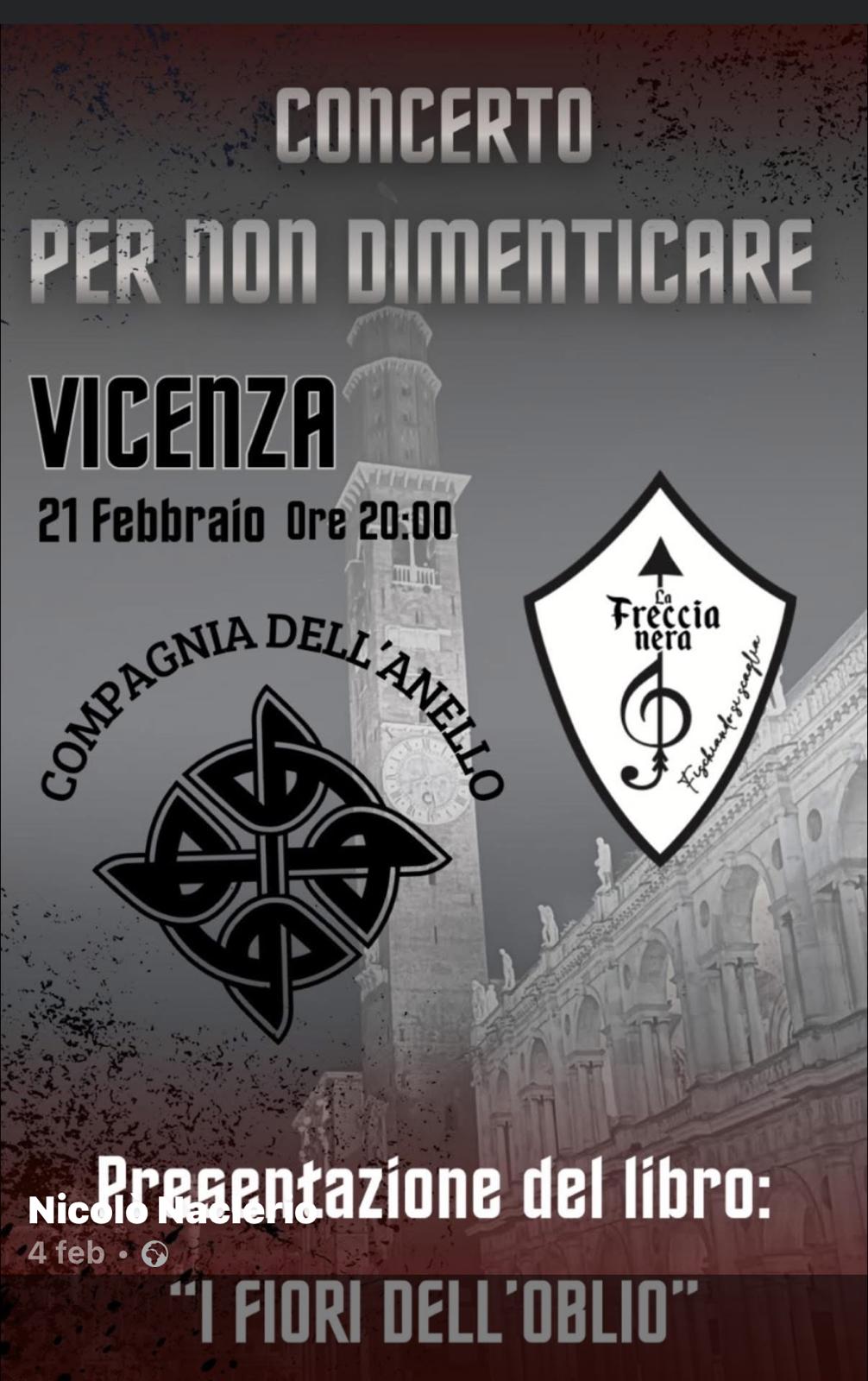 Lo scorso sabato 21 febbraio, Vicenza, città Medaglia d’Oro al Valor Militare per la Resistenza, è stata offesa da un evento di chiara matrice neofascista e revisionista, promosso da Nicolò Naclerio, capogruppo di Fratelli d’Italia in Consiglio comunale. L’evento ha previsto il laboratorio musicale “Freccia nera”, un podcast dedicato a Norma Cossetto e uno all’esodo giuliano-fiumano-dalmata, la presentazione del libro I fiori dell’oblio (per i tipi dell’editore di estrema destra Passaggio al Bosco) e, per finire, un concerto del gruppo neofascista “La compagnia dell’anello”. A denunciare con forza questa iniziativa è l’ANPI cittadina e provinciale. Ne parliamo con Luigi Poletto, presidente di ANPI Vicenza e membro della presidenza provinciale vicentina.