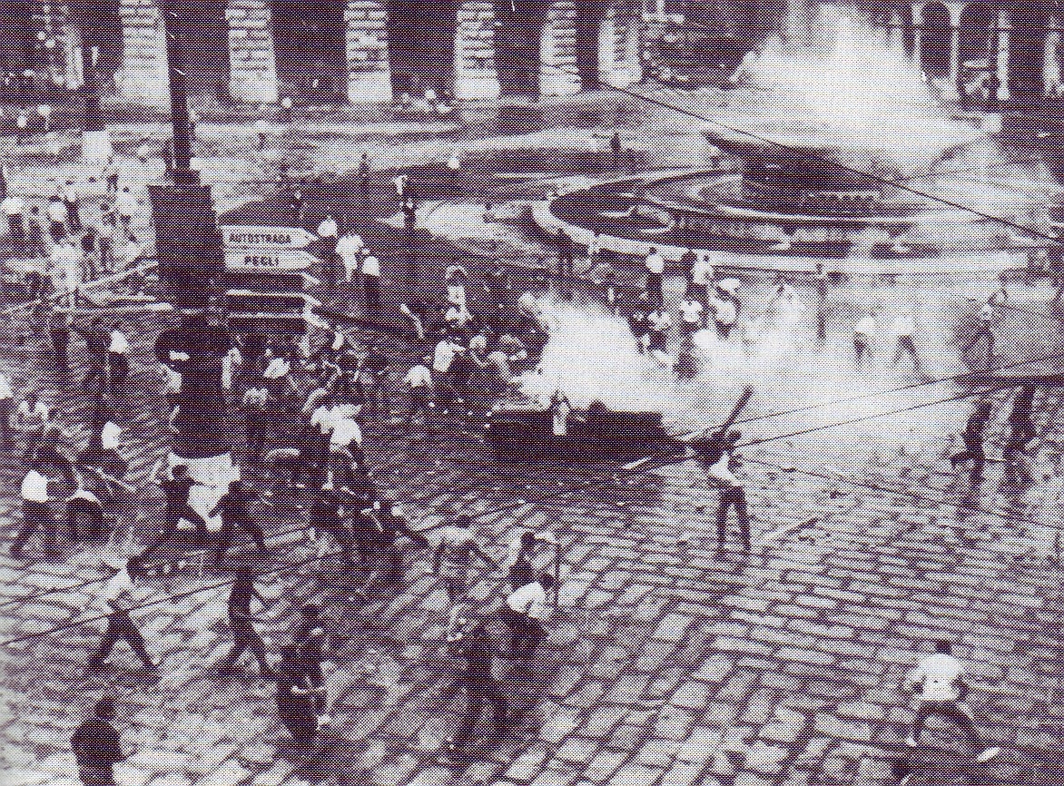 E gli scontri si verificano. Caroselli, impiego di autoblinde, pestaggi, inseguimenti, feriti da una parte e dall’altra. Tutto questo dura ore ed ore. Fino a che l’intervento risoluto di Giorgio Gimelli, Presidente dell’Anpi, nei confronti dei vertici della Questura, non determina, verso sera, un allentamento degli scontri sino al loro cessare col ritiro degli agenti di polizia.