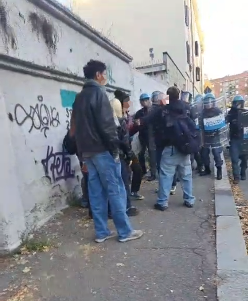 “C’era un ragazzo che consegnava i volantini insieme a due cameramen-videomaker, chiamiamoli così, che facevano le riprese, e due camionette della polizia con annessa Digos intorno. Non erano un gruppo, come al Primo, ma c’è una grande presenza di polizia che abbiamo già notato: una volta sono venuti anche nella sede di via Pacini, questa volta cinque ragazzi e con annessa Polizia e Digos di nuovo”, racconta A., studente del liceo, a Patria Indipendente.