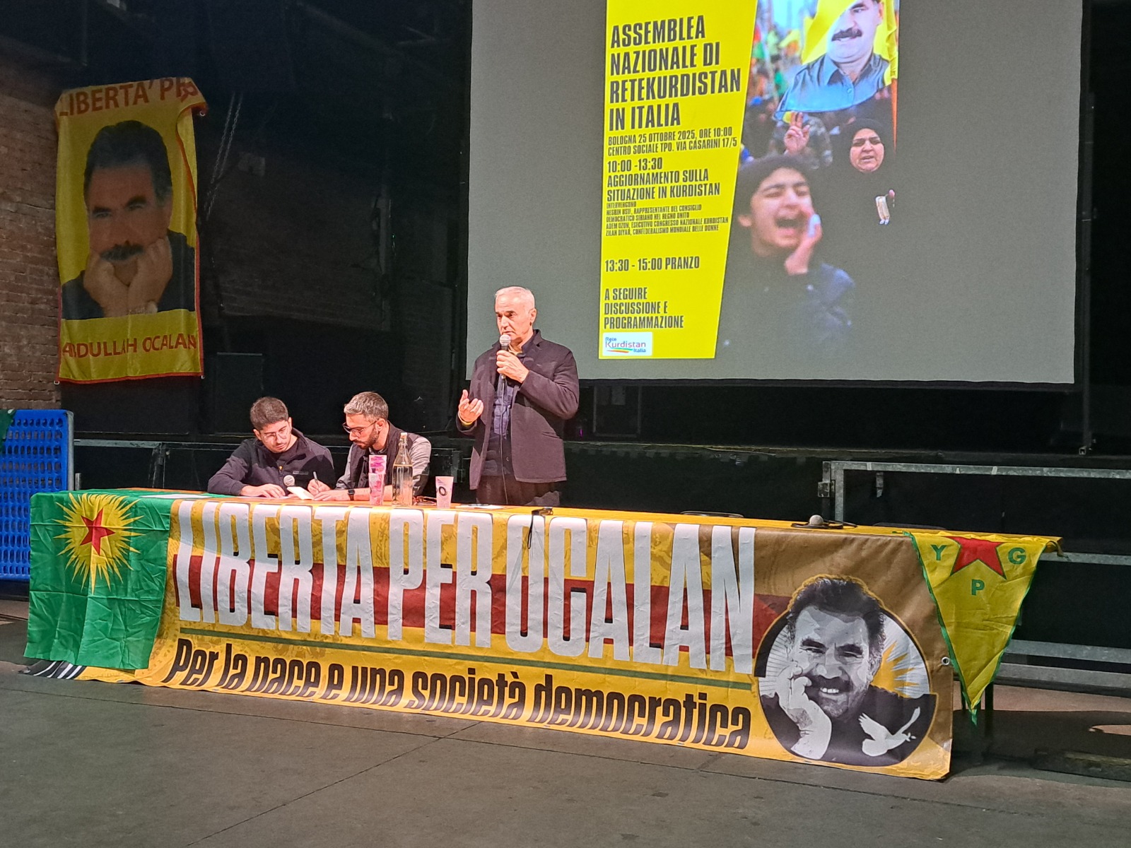 Ha concluso il suo intervento soffermandosi sul processo di pace in corso, ammettendo che avanza troppo lentamente. Öcalan sta guidando il suo popolo attraverso questa fase delicata, chiedendogli anche sacrifici e sforzi. La sua autorevolezza ha consentito di ottenere risposte positive ad ogni sua chiamata, come la dichiarazione di scioglimento del Pkk, il gesto simbolico di distruzione delle armi da parte di trenta combattenti, quindici donne e quindici uomini, sulle montagne di Sulaimaniyah, e proprio il 25 ottobre (giorno dell’Assemblea di Retekurdistan) il ritiro dei e delle combattenti dal Bakur (Nord del Kurdistan, ossia la zona sud-orientale della Turchia), che si sono spostati nelle basi sui monti Qandil, in Bașur (Kurdistan meridionale, nel nord dell’Iraq).