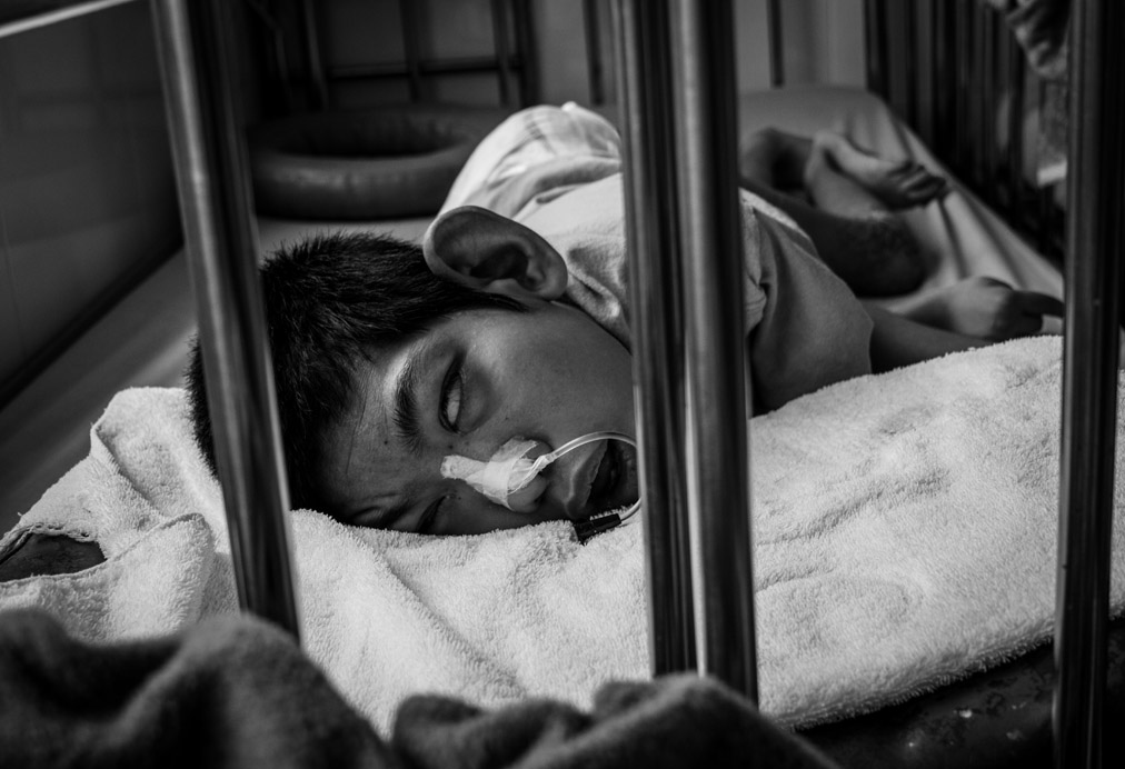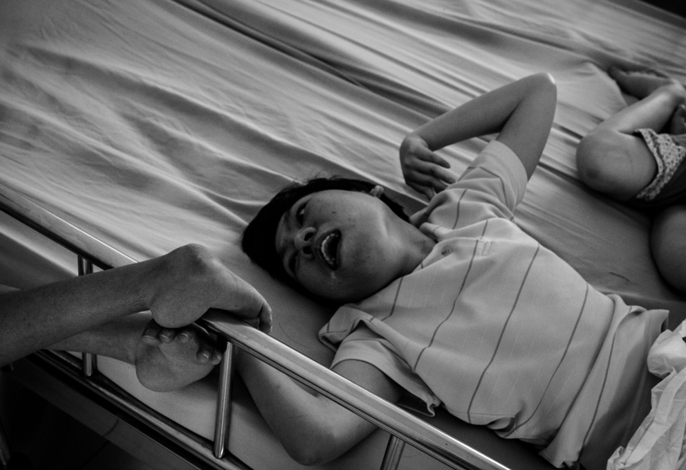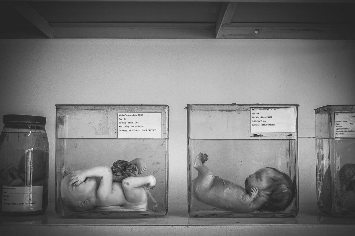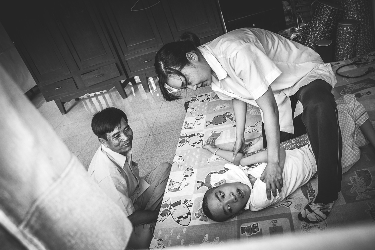 Ly Thi Son ha un sorriso disarmante. Sopravvive vendendo Chewing Gum e lattine di Red Bull davanti casa. Suo figlio Tran Van Thi è accucciato in un angolo dello stanzino, due sbarre a restringere una finestra angusta. «Mio marito è morto pochi mesi fa ed è stato contaminato dall’Agente Arancio mentre era al fronte. Nessuno in tempo di guerra sapeva cosa potesse essere quel gas verdognolo che cadeva dal cielo. Sentivamo la pelle bruciare, unta come olio. Una nube violacea si addensava sui nostri raccolti, sui tetti delle nostre capanne. Quando è nato nostro figlio abbiamo fatto degli esami medici e abbiamo capito. Abbiamo scoperto la verità». Tran non si muove, non si lava, non mangia e non beve se non grazie all’aiuto della madre. Ha le ginocchia sbucciate e lo sguardo perso. Si sposta gattonando, non emette parole. Fine guerra mai.