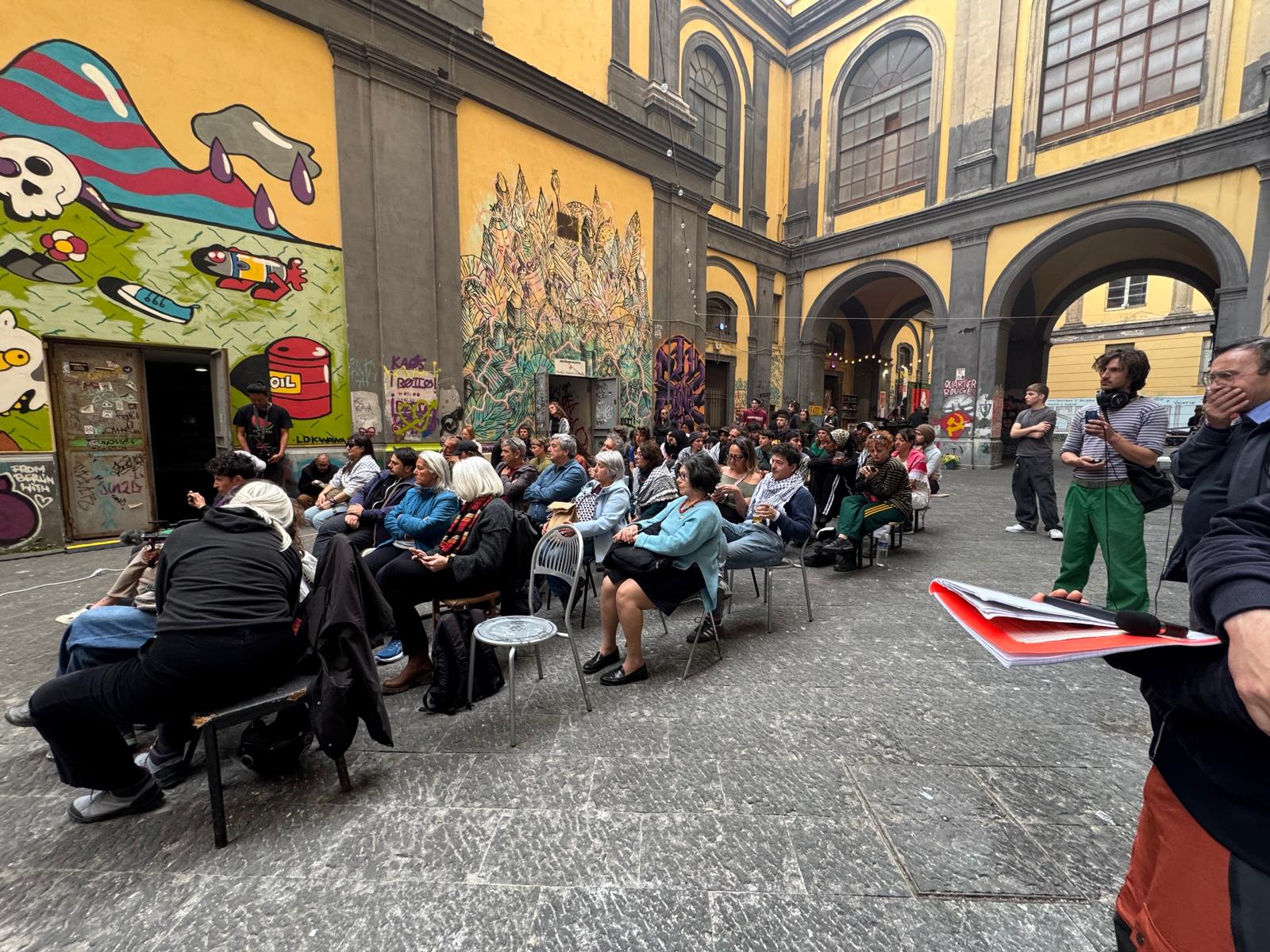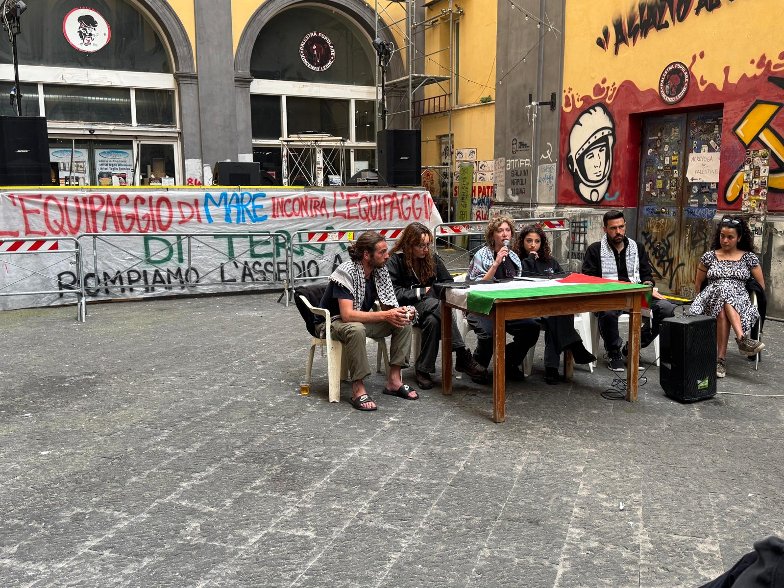 L’accoglienza della flotta — pasti, riposo, incontri tra attivisti napoletani e naviganti di mezzo mondo — è stata curata dal Collettivo Argo, organizzazione studentesca molto attiva nel sostegno alla causa palestinese, tra i protagonisti delle mobilitazioni nell’Università L’Orientale e nella Federico II.